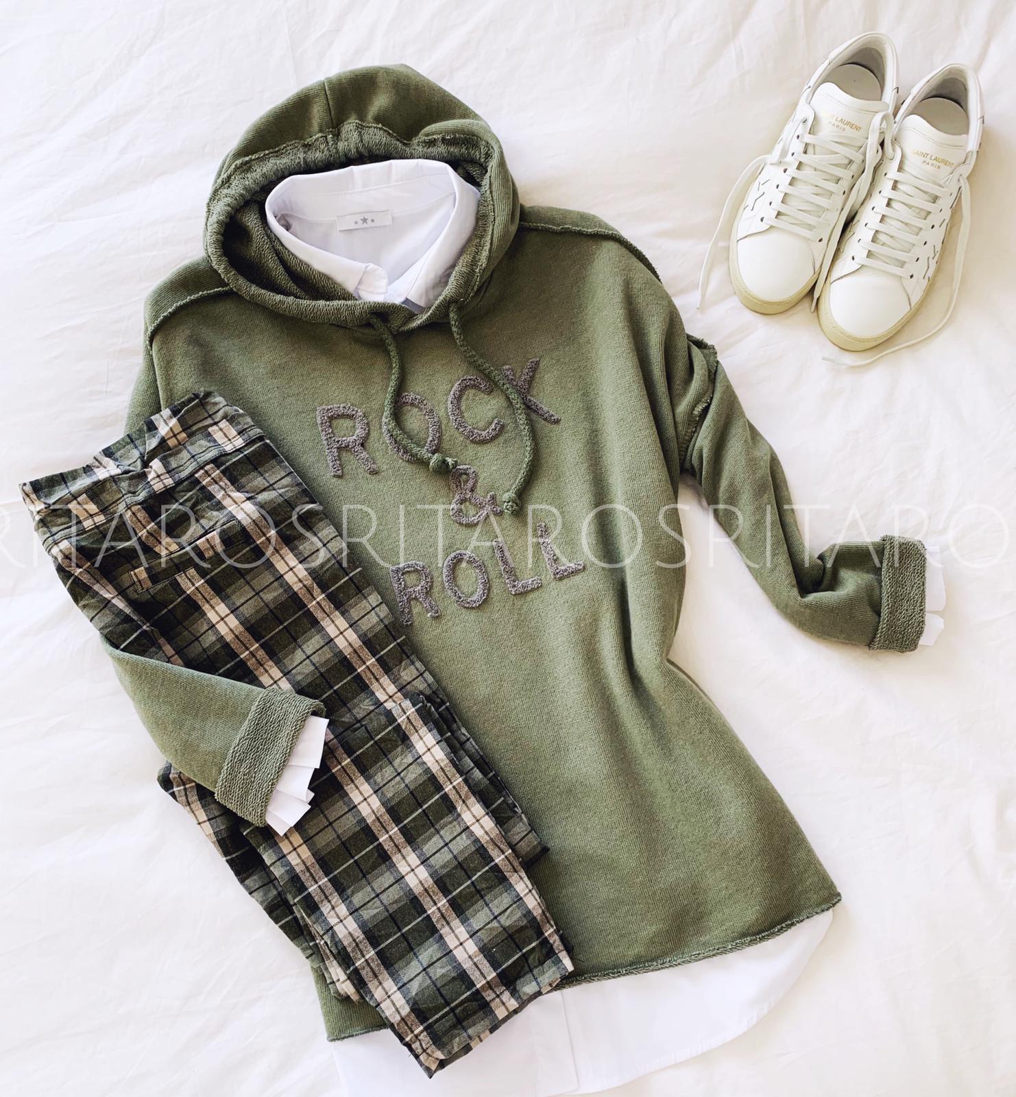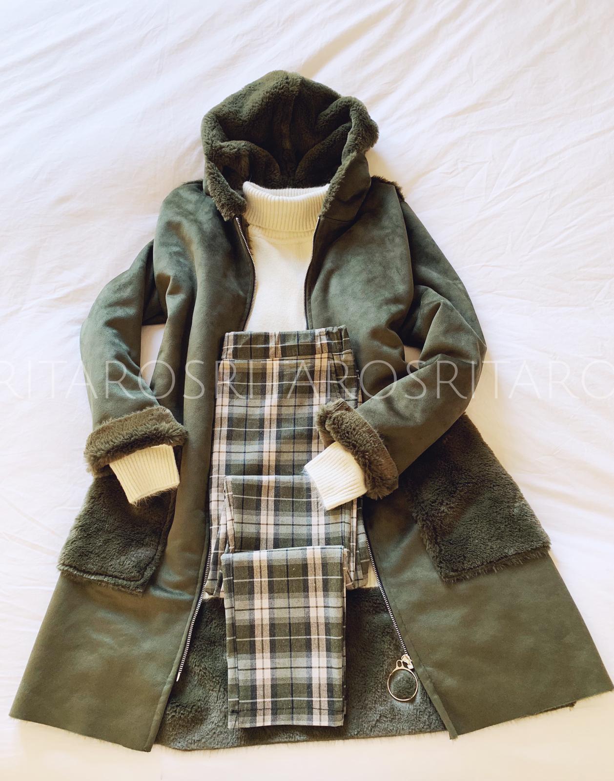 Pantalón largo estampado de cuadros con cintura elástica. Combínalo con nuestro jersey June en color crudo y nuestra chaqueta de antelina en verde kaki y te encantará el resultado