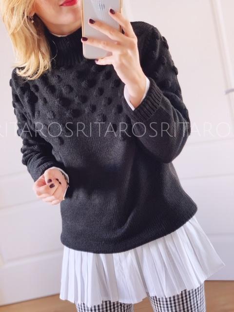 Jersey de punto con cuello subido y manga larga. Un jersey ideal para combinar con nuestro pantalón London.