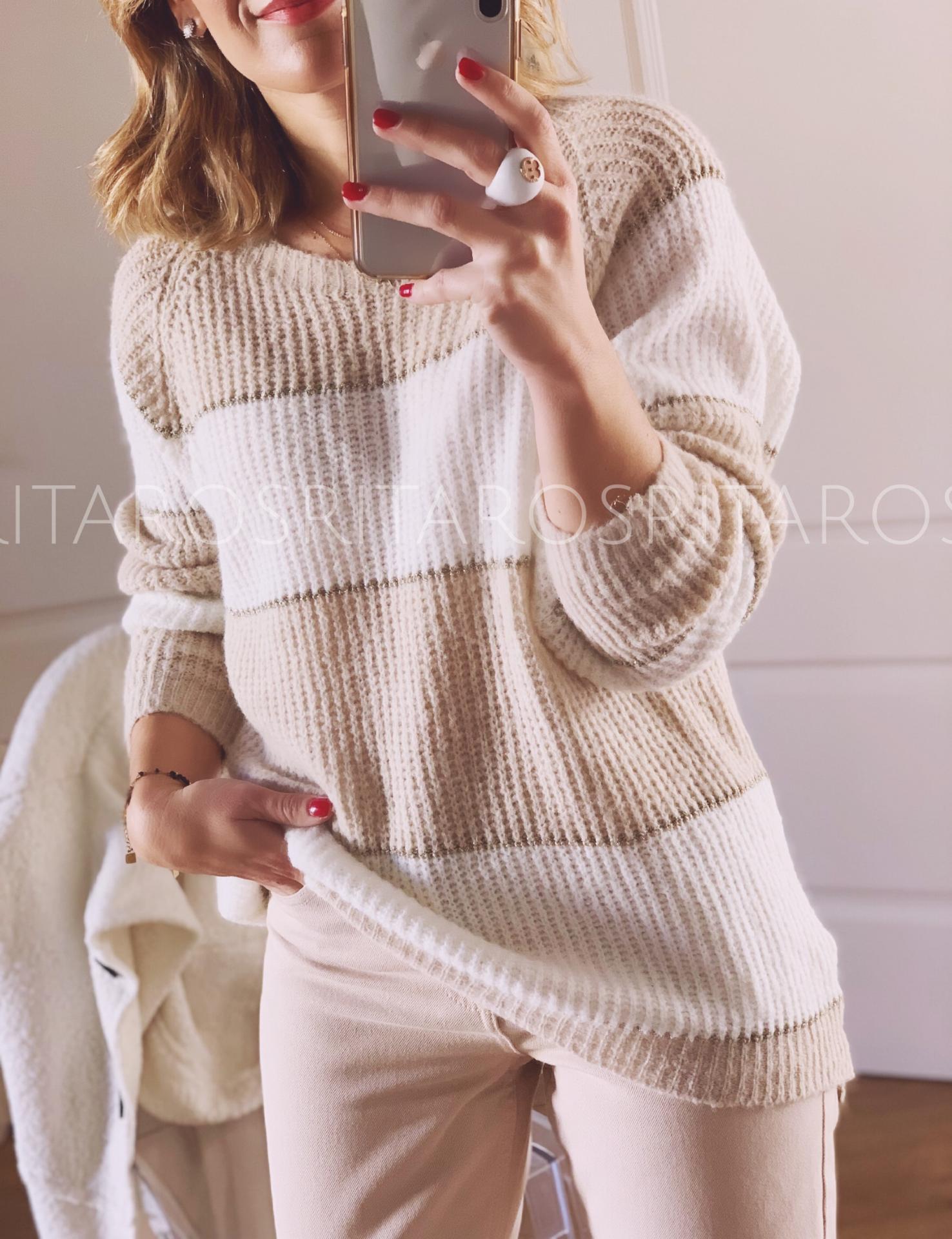 Una monada de jersey de punto, cuello redondo y manga larga con unos tonos en crudo preciosos. Combínalo con nuestro abrigo Sweet y te encantará el resultado.