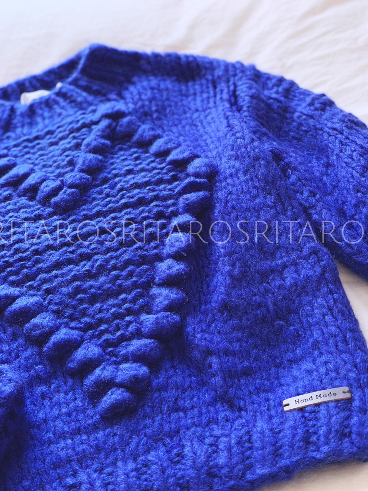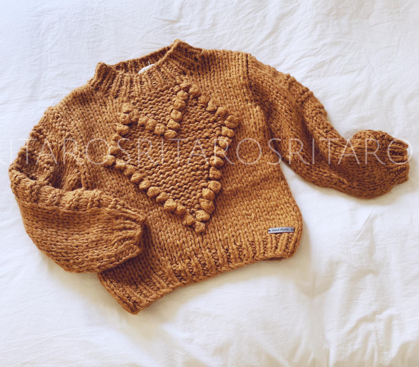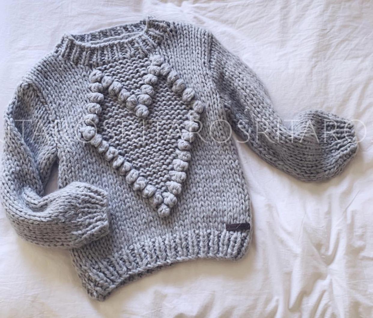 Jersey de punto grueso hecho a mano, cuello redondo y manga larga con detalle "Corazón" en frontal.
