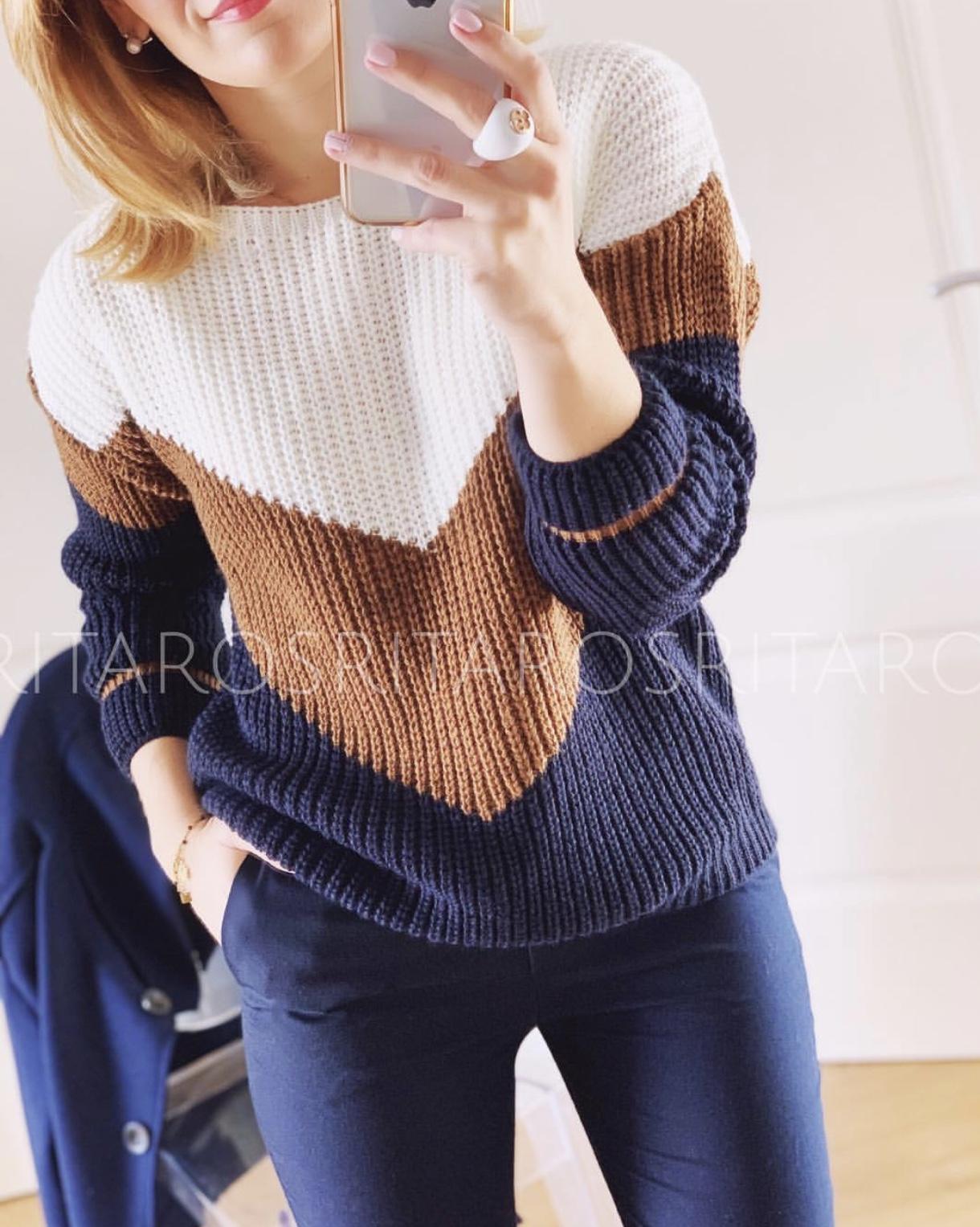 Una monada de jersey de punto con cuello redondo y manga larga. Combínalo con nuestro chaquetón Chimenea en azul marino y te encantará.