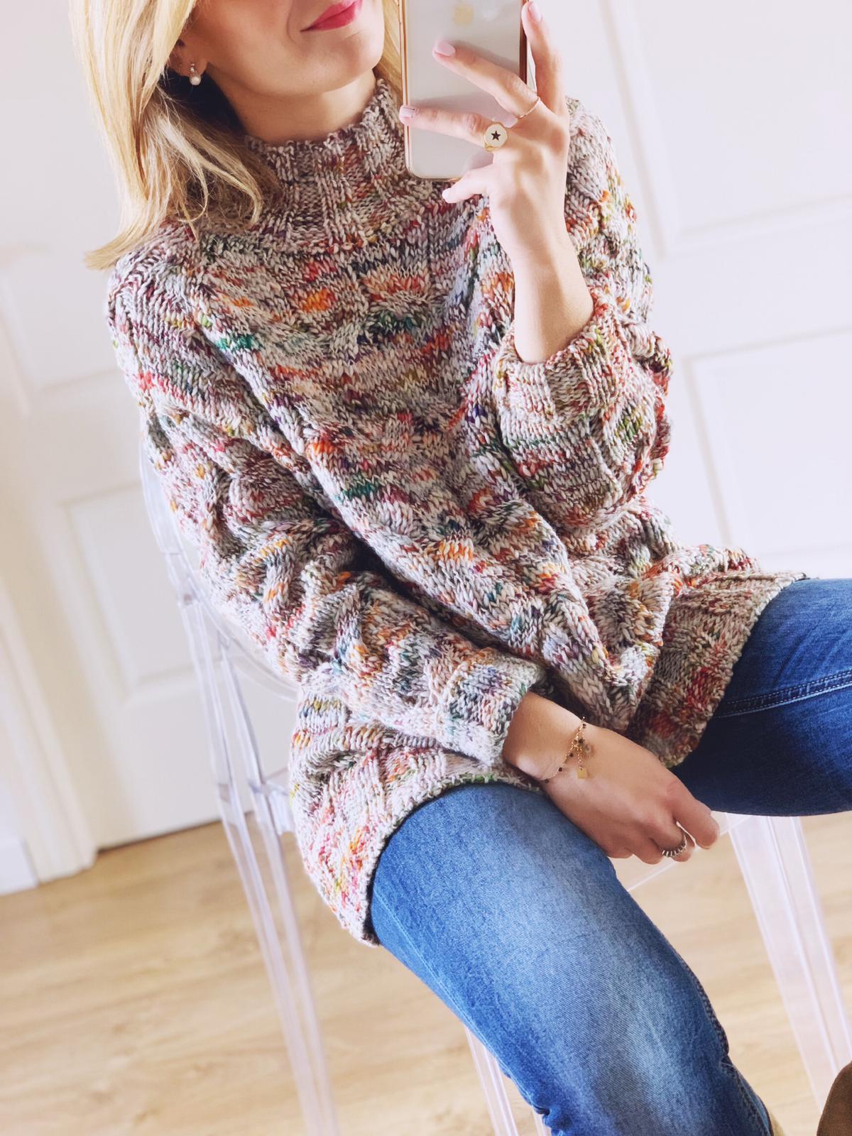 Jersey de punto de cuello subido y manga larga con un estampado precioso.