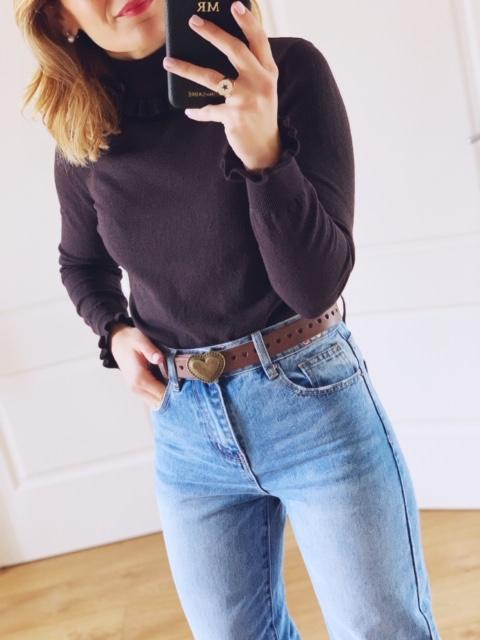 Pantalón vaquero de corte recto y tiro alto, sin elástico.