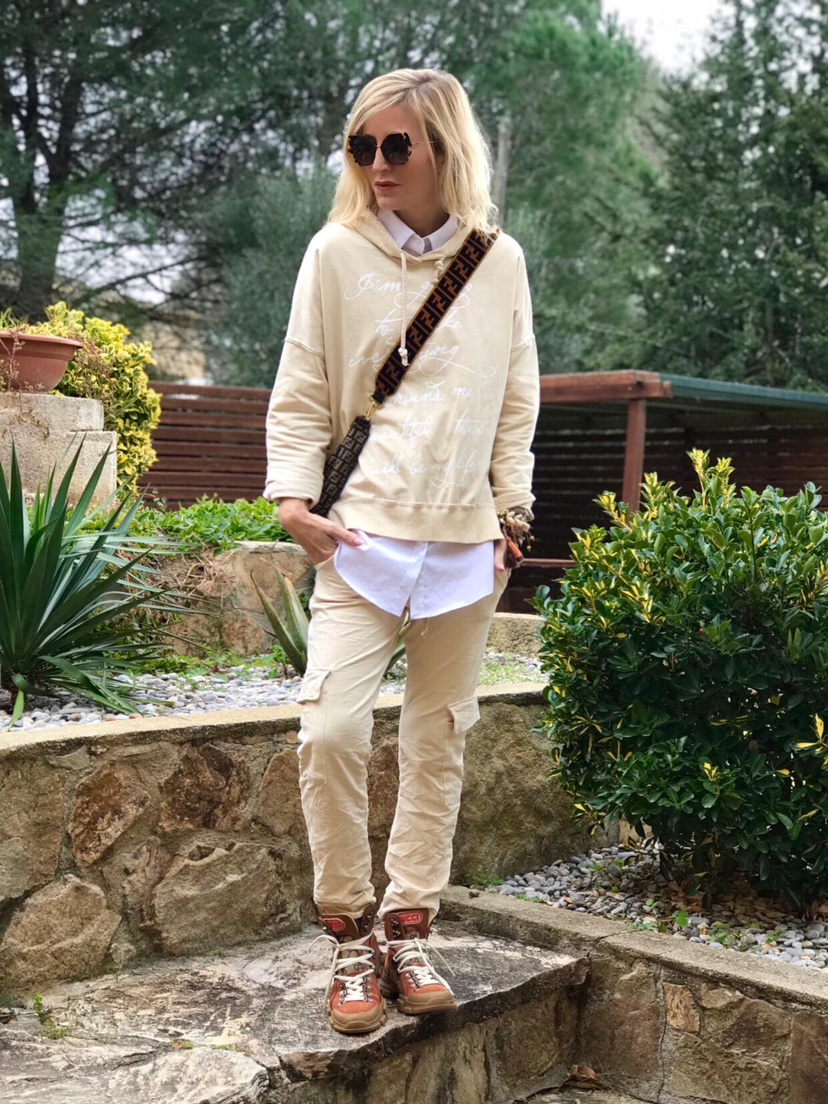 Pantalón efecto chandal con bolsillos laterales, con un tejido super cómodo.