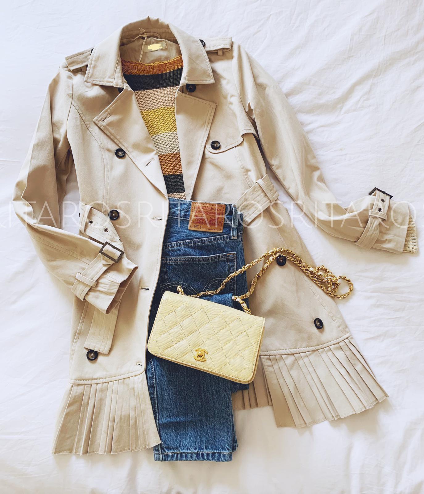 Preciosa gabardina con detalle plisado en el bajo. Combínala con nuestro jersey Glitter de rayas y te encantará el resultado.