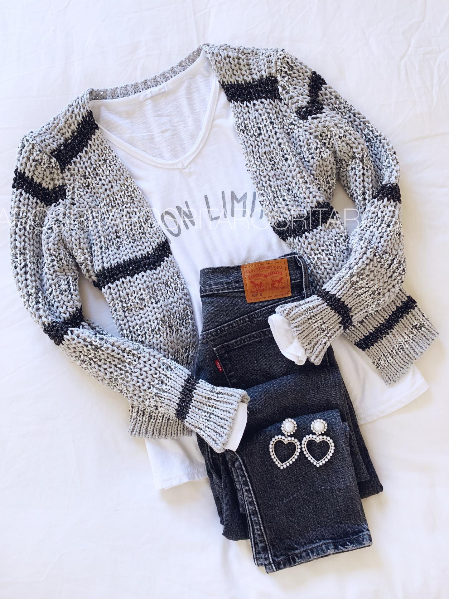 Una monada de chaqueta tricotada en punto grueso con detalles glitter perfecta para combinar con camiseta.