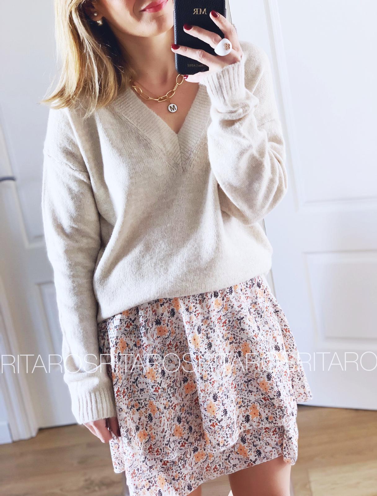 Monada de falda corta estampada de florecitas con detalles doble volante.
