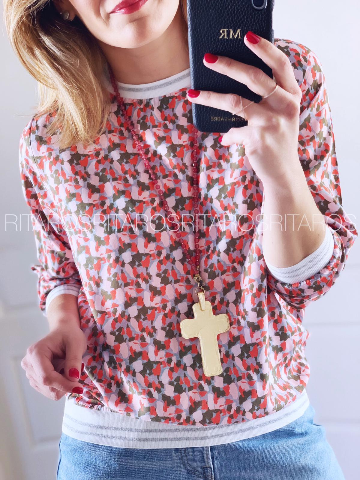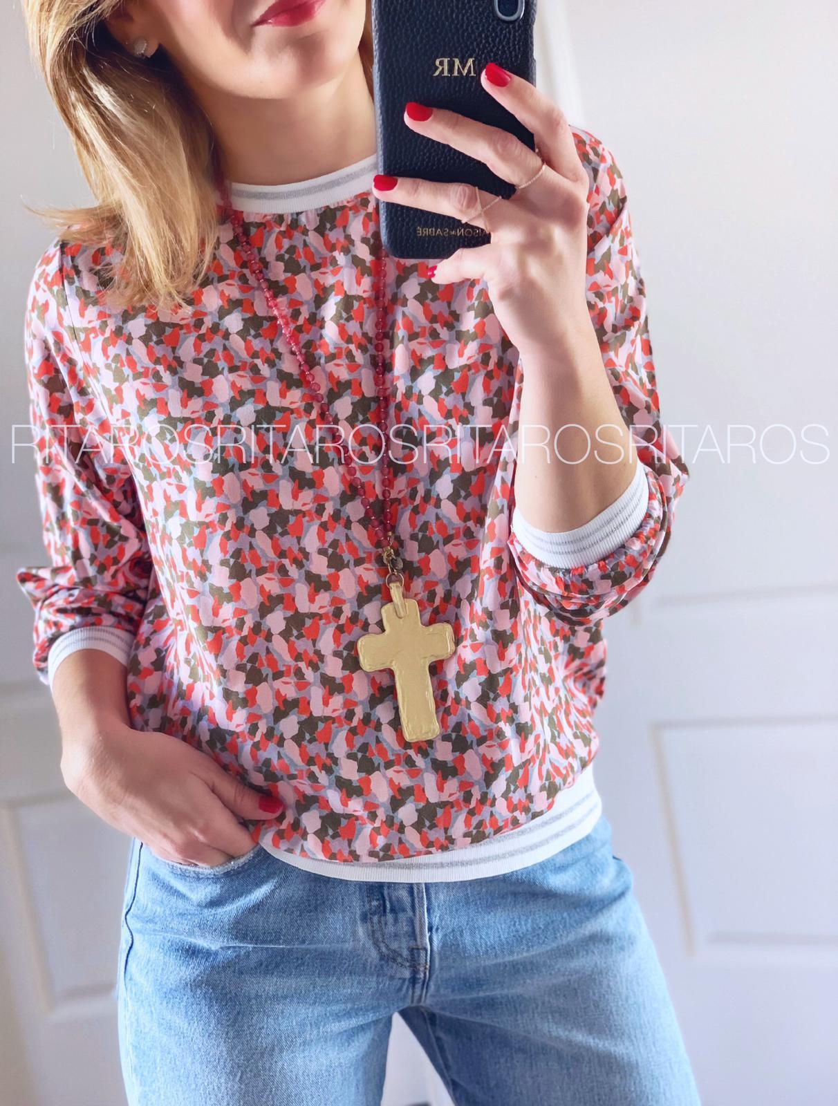 Una monada de blusa con detalle glitter en mangas, cuello y bajo.