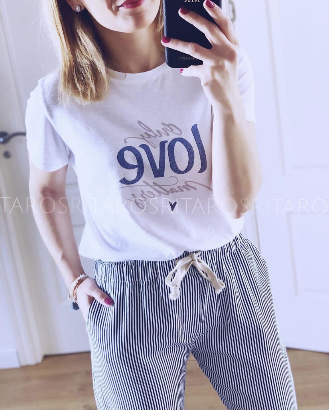 Camiseta de manga corta con detalle mensaje. Una prenda perfecta que hemos combinado con nuestra americana Carlotta, te encantará el resultado.