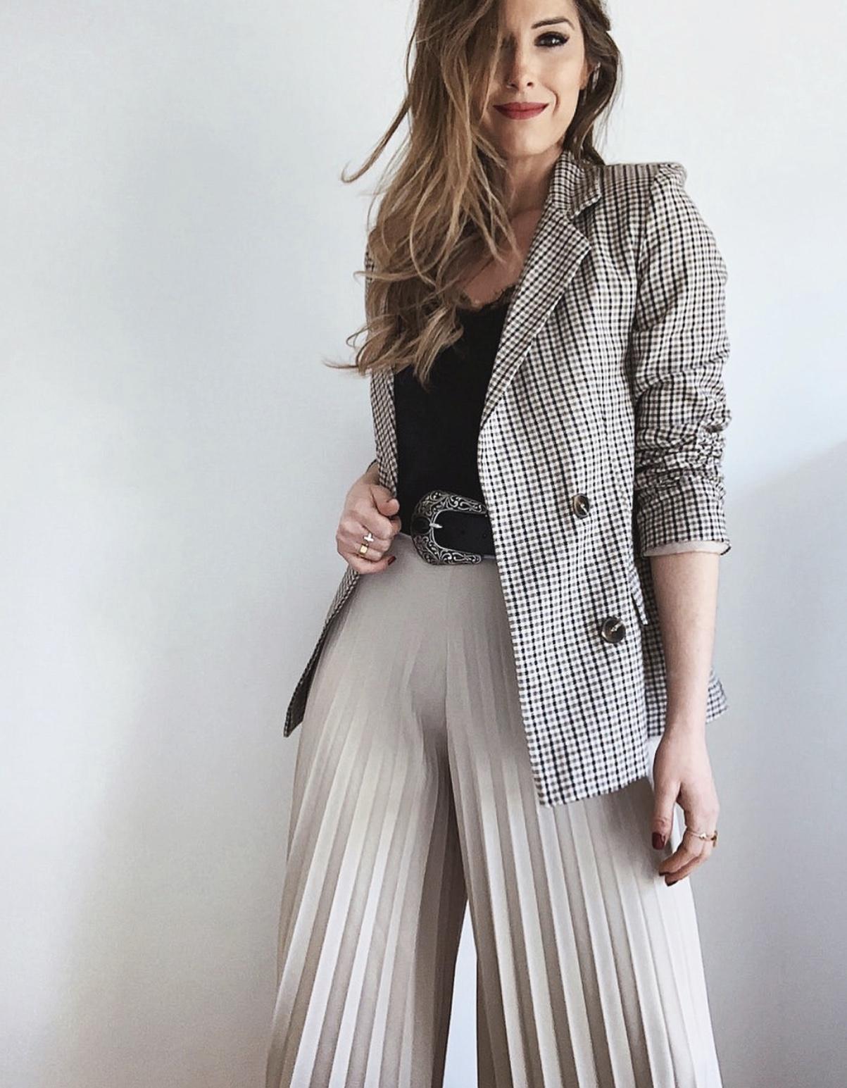 Americana con cuello y solapa de corte ligeramente entallado, estampada de cuadros. Falsos bolsillos delanteros.