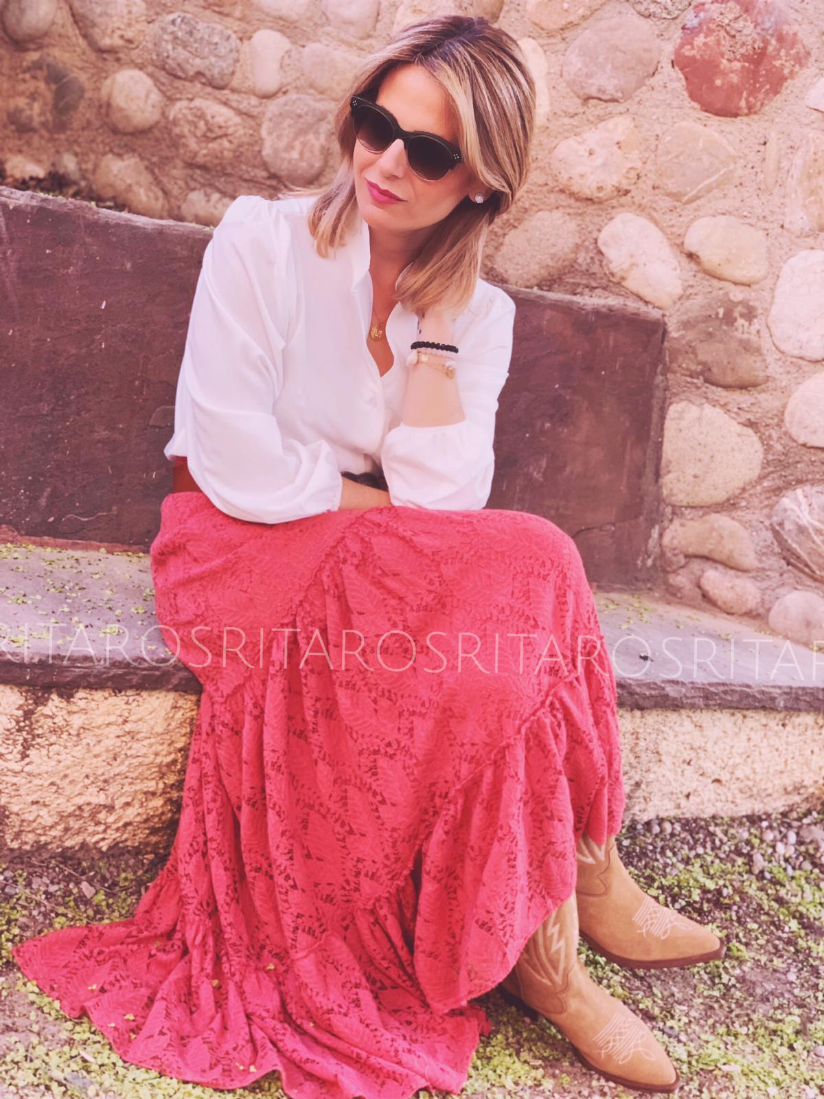 Una monada de blusa de corte ligeramente entallada, cuello mao y manga larga con puños fruncidos. El tejido es precioso.