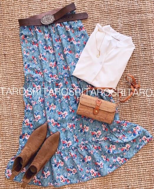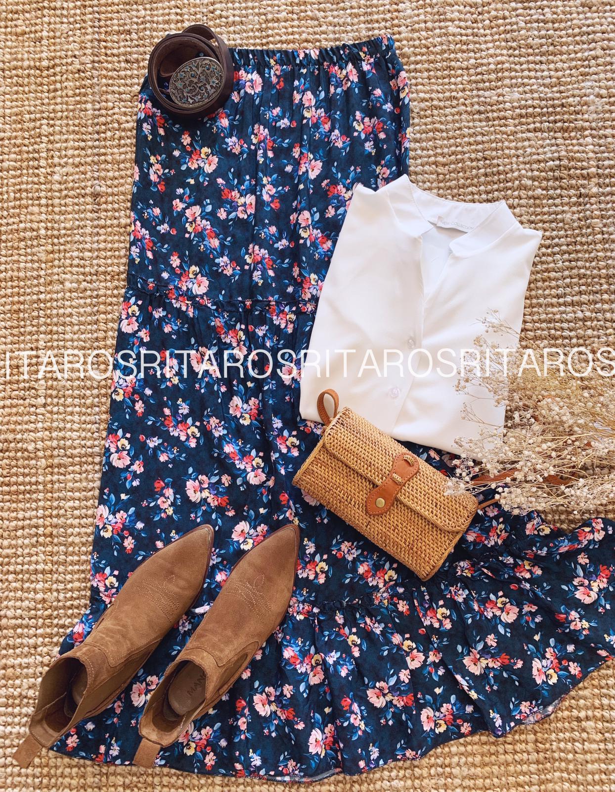 Falda larga de vuelo estampada con cintura con goma elástica. Combínala con nuestra blusa Mao y unos botines y te encantará el resultado.