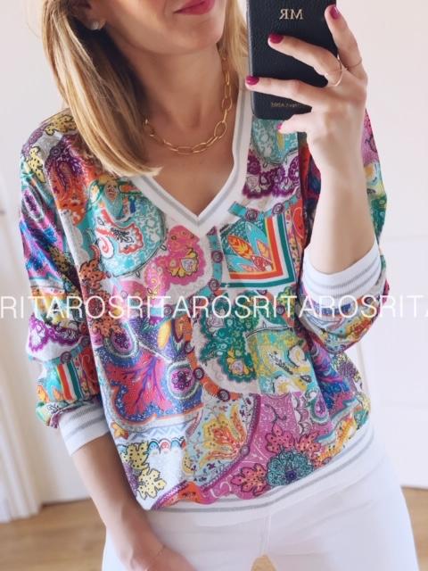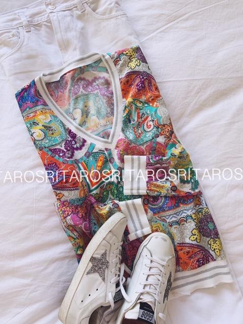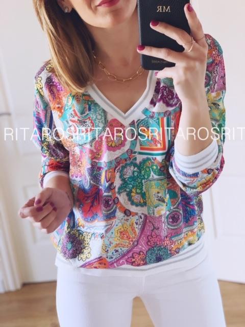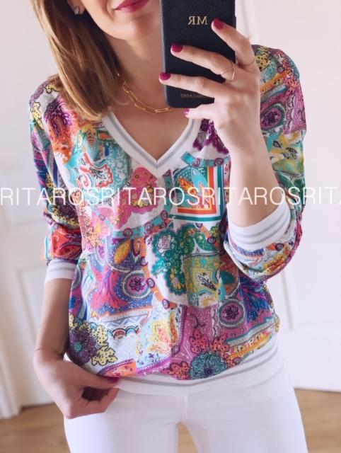 Blusa estampado de manga larga con detalle escote y puños en goma y glitter.