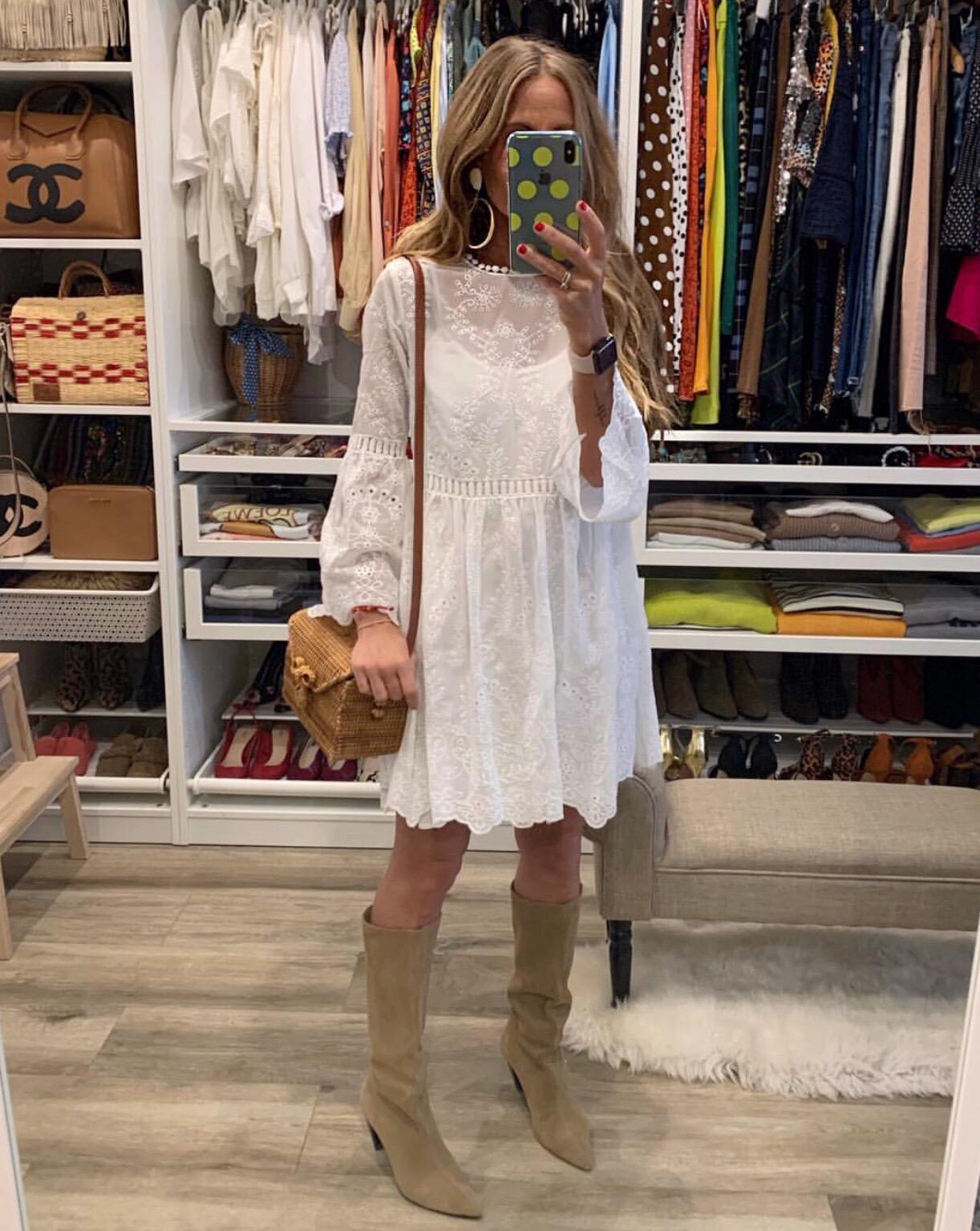 Precioso vestido bordado manga larga y cuello redondo todo bordado. Cintura marcada con bordados y forro interior incluído.