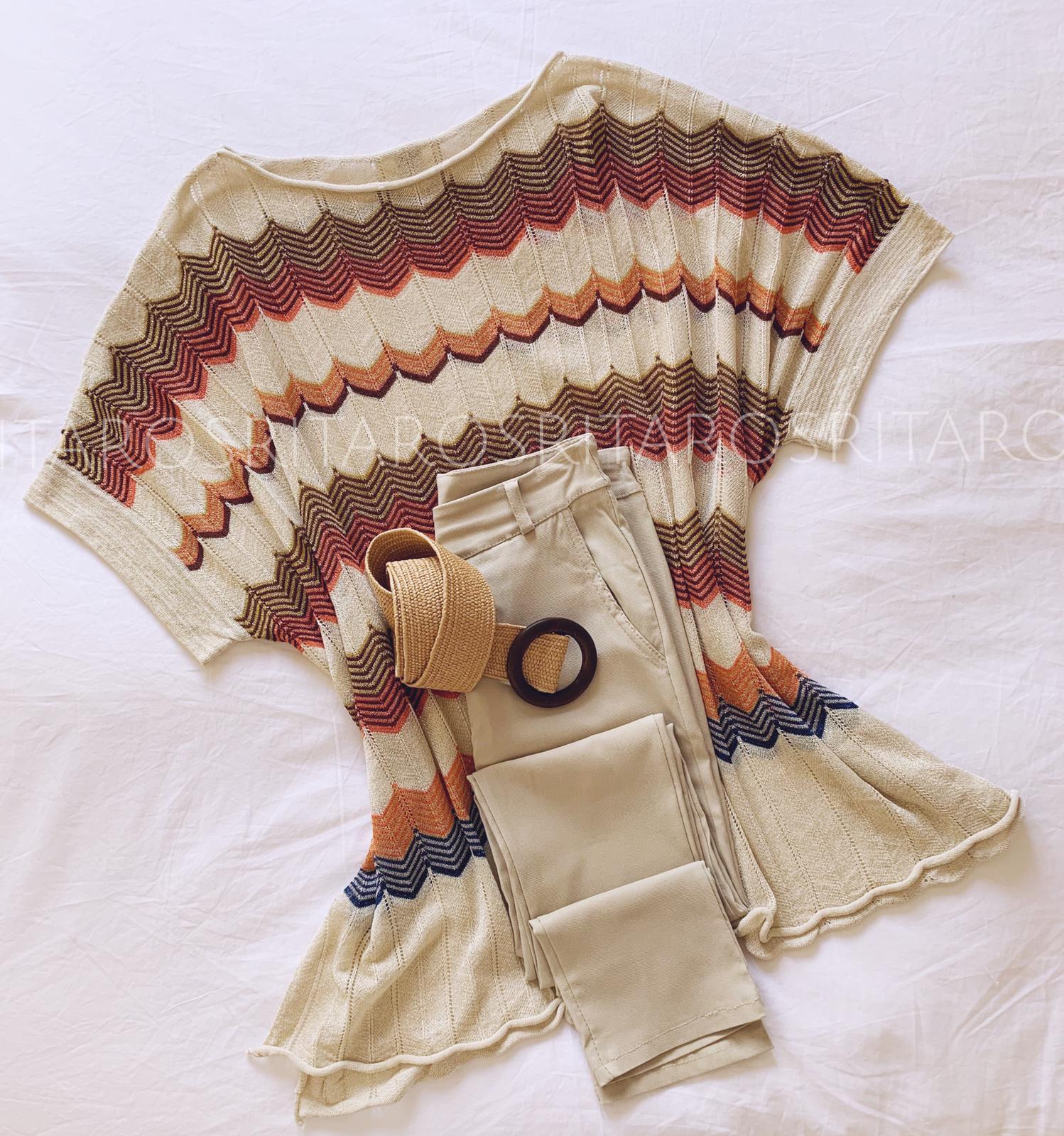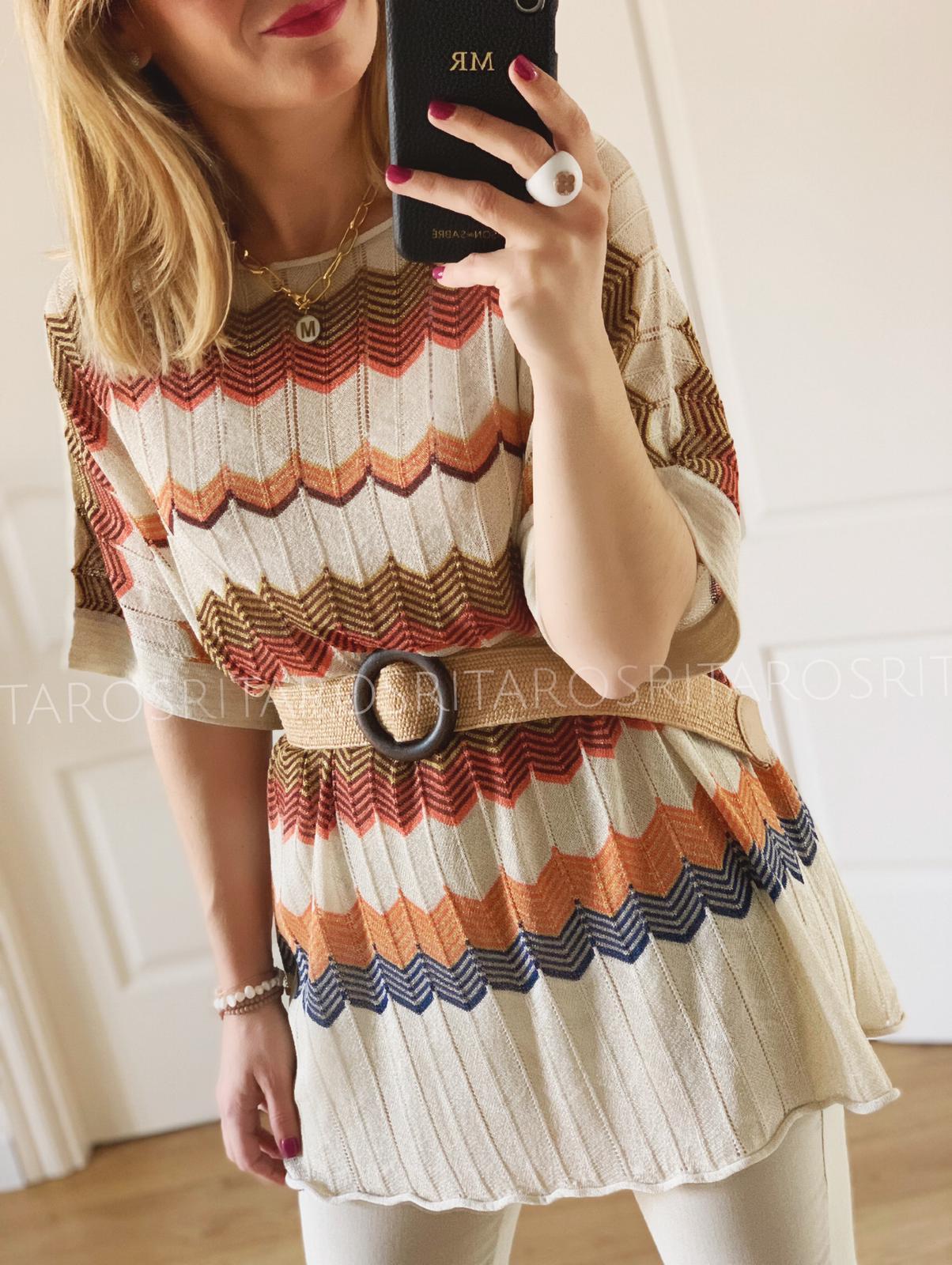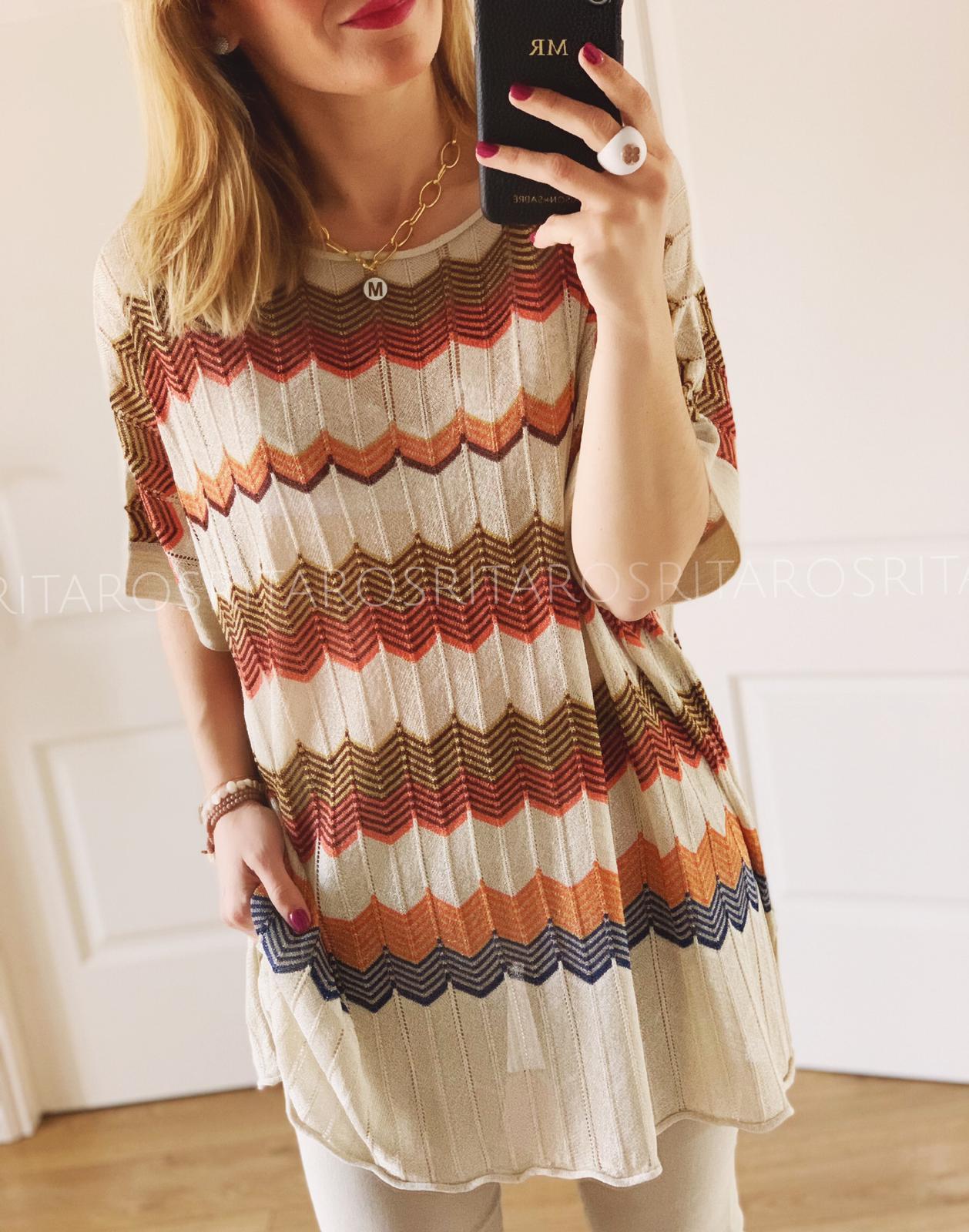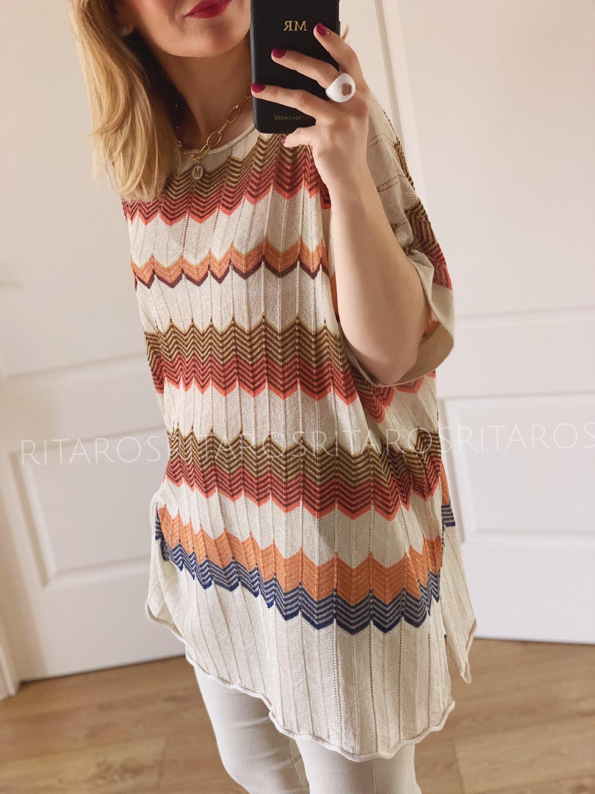 Jersey ancho de manga corta con un estampado geométrico precioso con un toque de glitter.