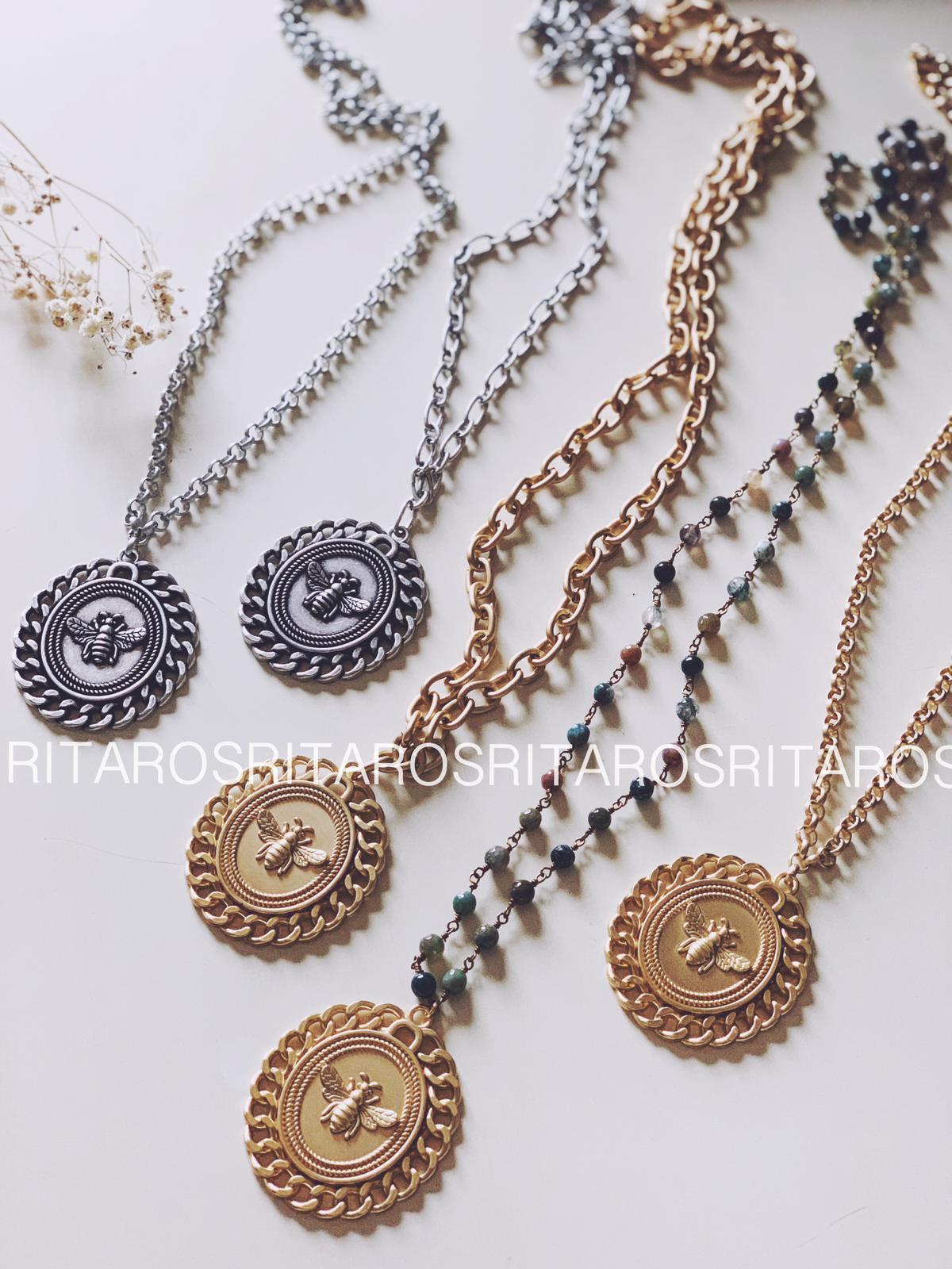 Collar con cadena de piedras o eslabón y detalle medalla. Un complemento precioso que realzará tus looks.