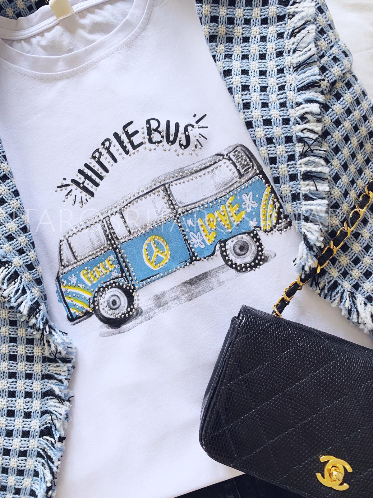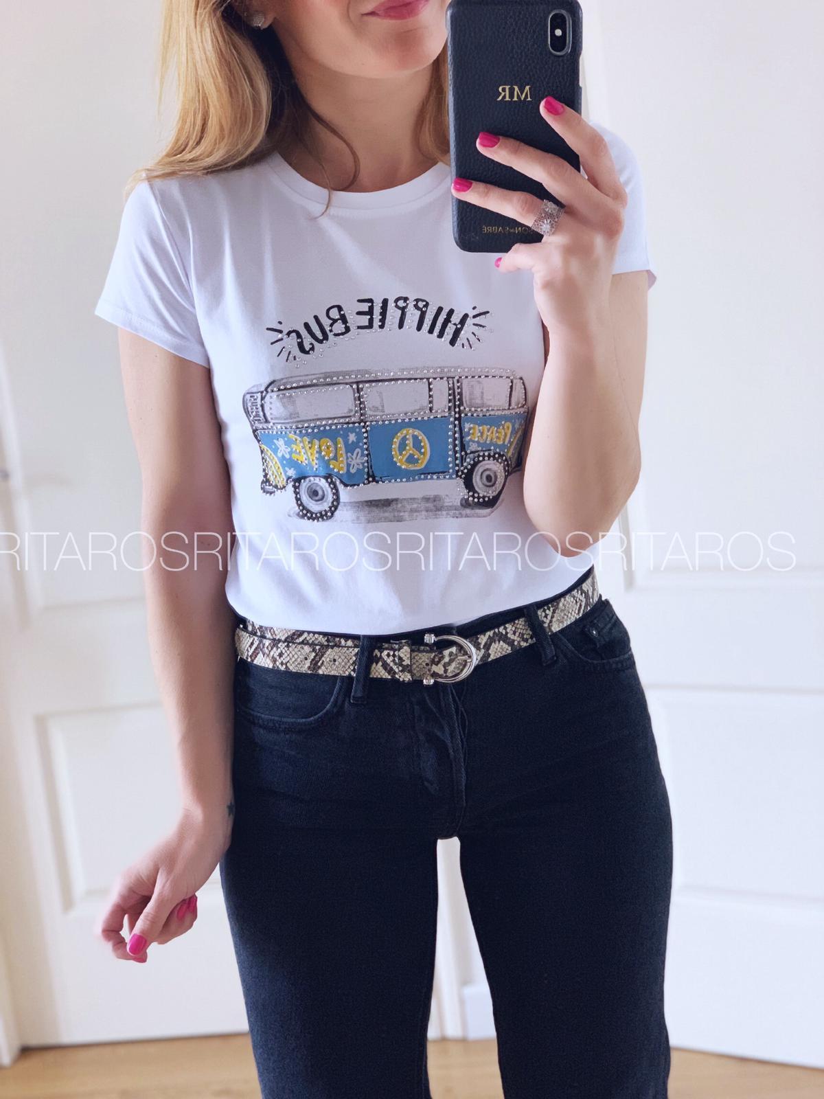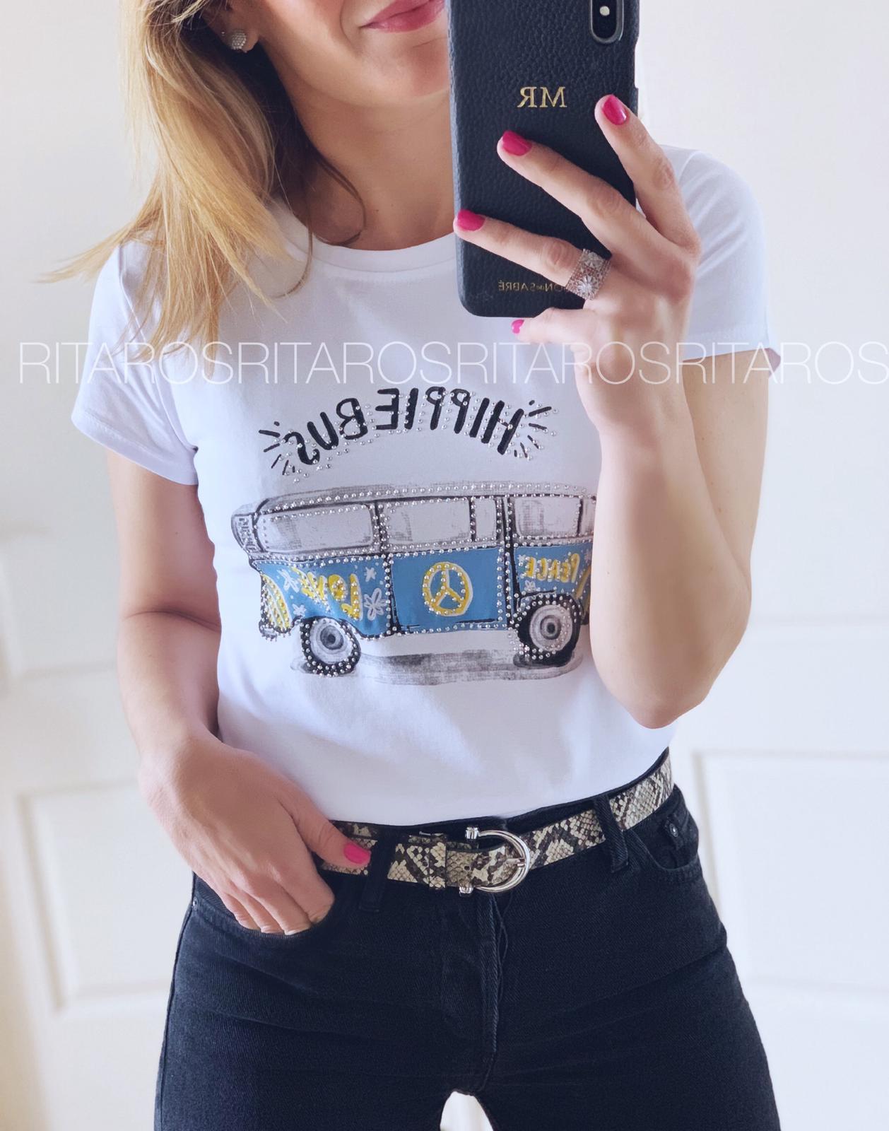 Camiseta de manga corta y cuello redondo con detalle estampación frontal combinado con tachuelas.