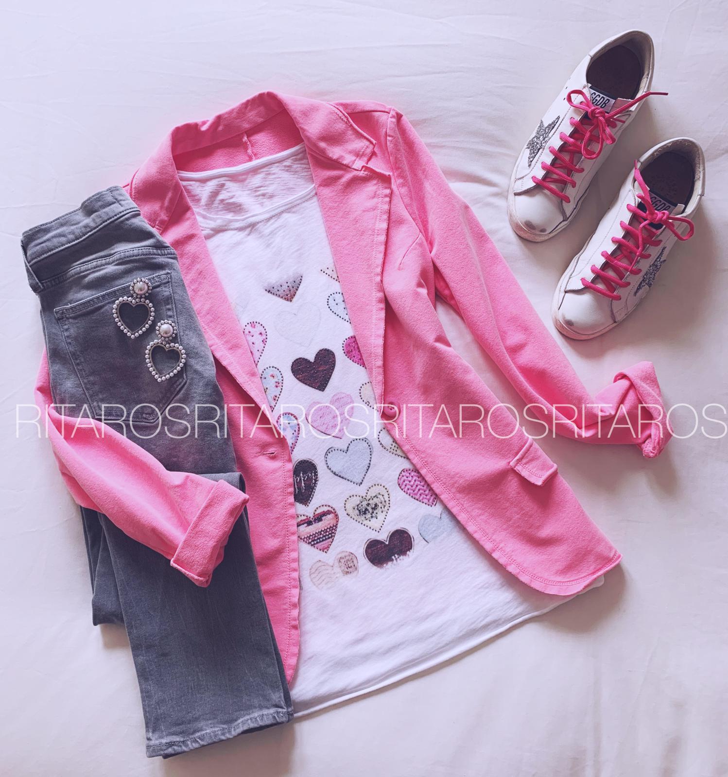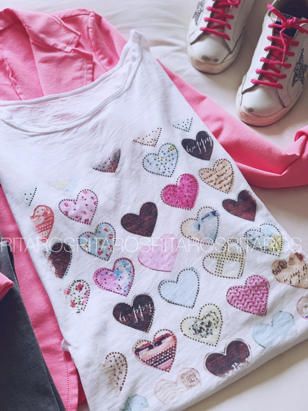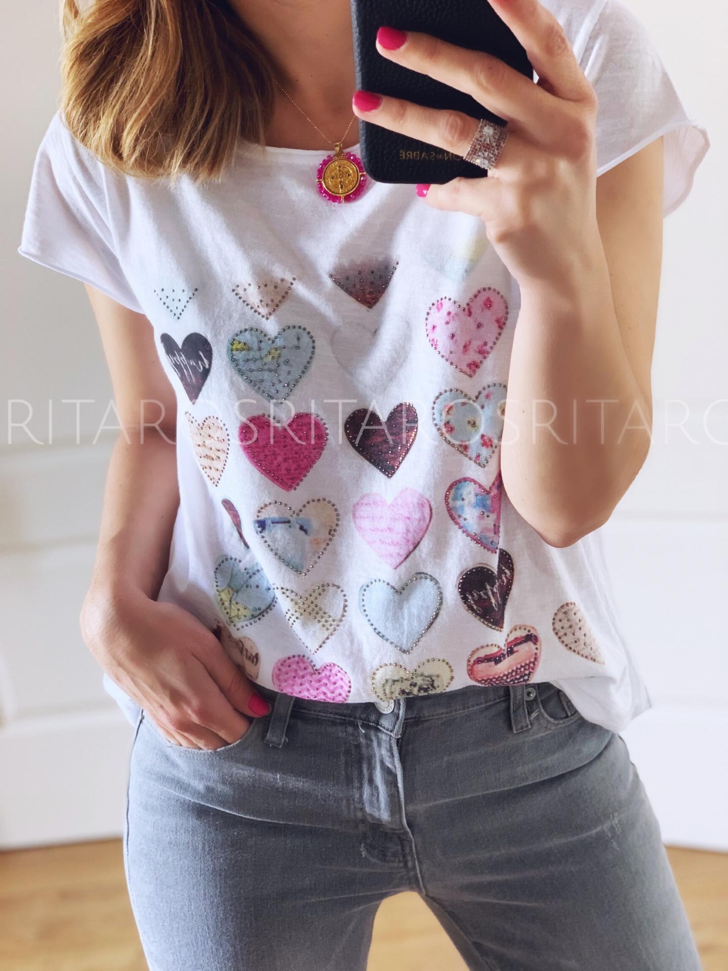 Camiseta de algodón en manga corta y cuello redondo con detalle estampado mini corazones.