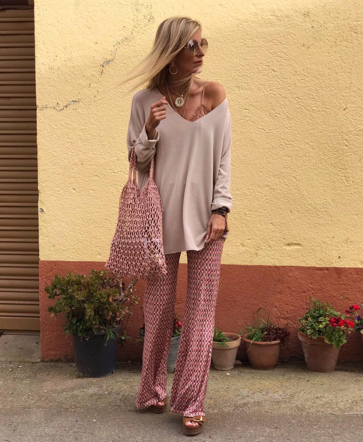 Pantalón de punto estilo Boho estampado. Combínalo con nuestro Jersey Emma en color beige y te encantará el resultado.