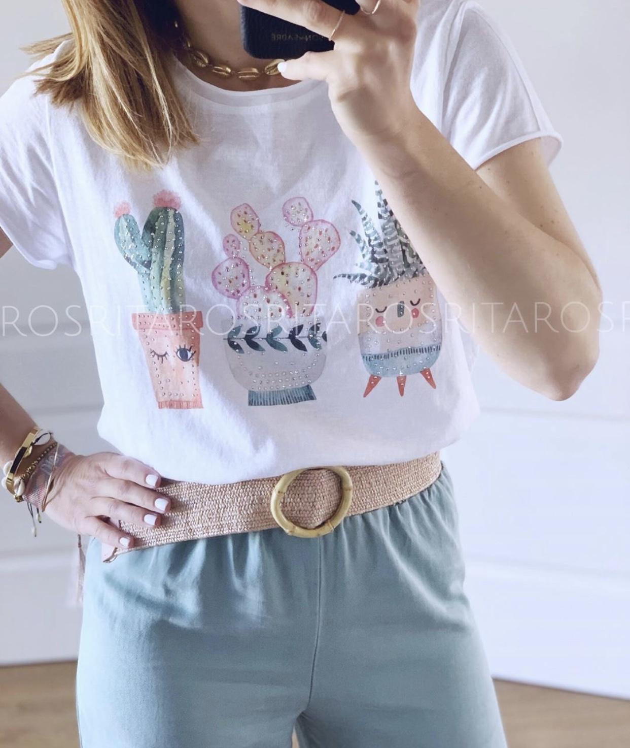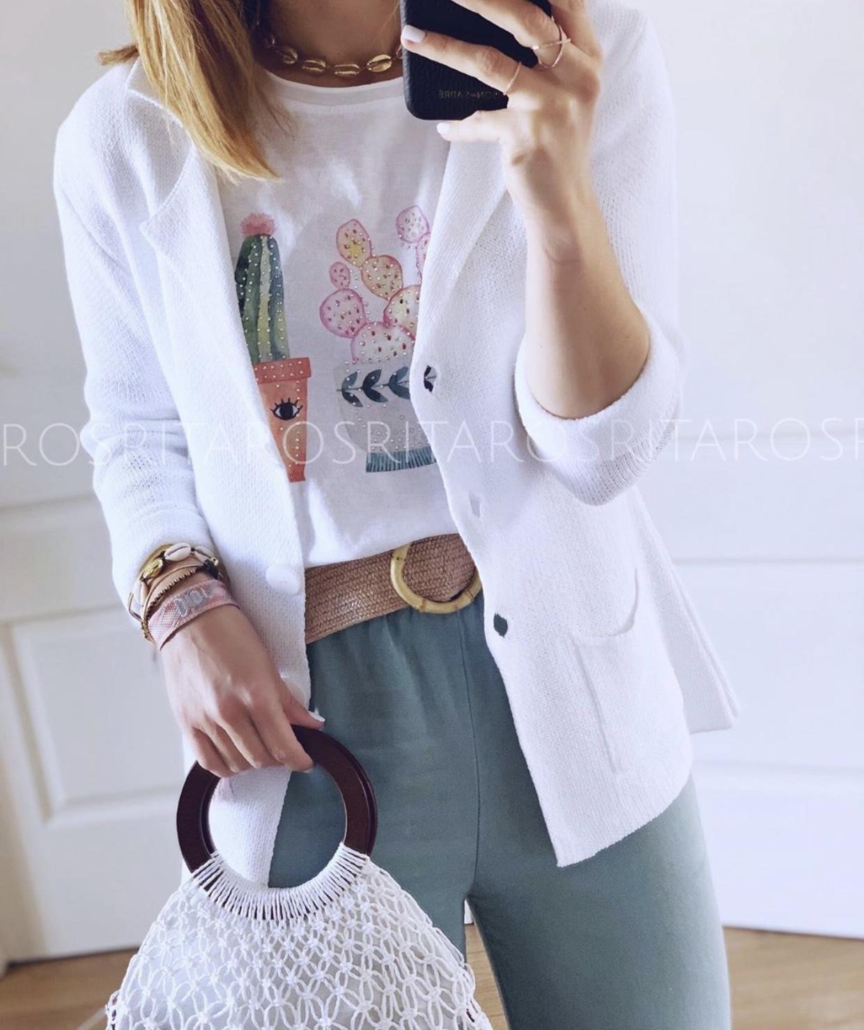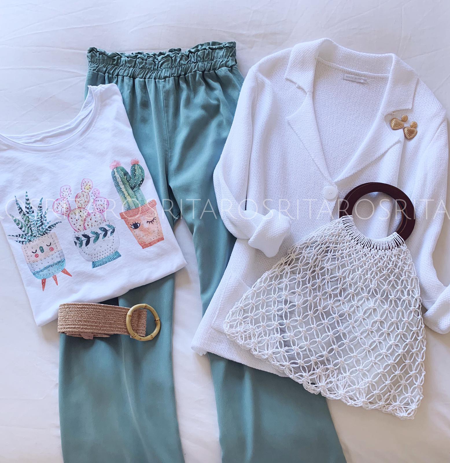 Pantalón fluído ancho y cintura con goma elástica. Combínalo con nuestra camiseta 3 Cactus y nuestra americana de punto en blanco y te encantará el resultado