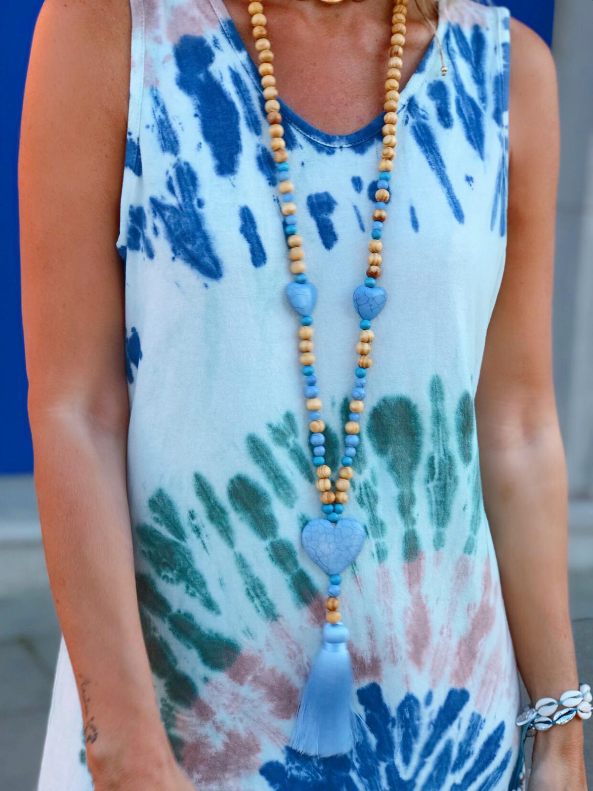 Vestido largo estilo Tie Dye sin mangas y cuello pico.