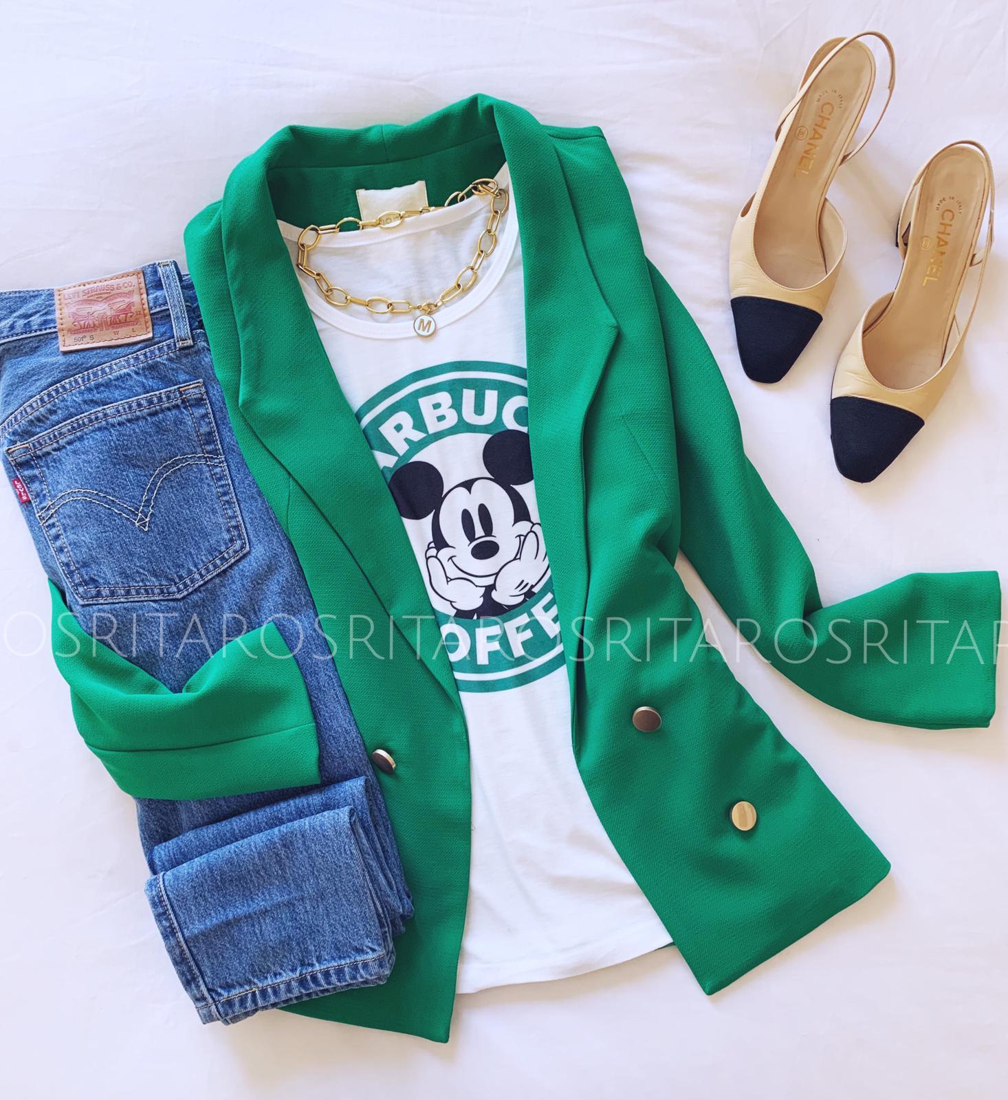 Camiseta de manga corta y cuello redondo estampada. Combínala con nuestra americana Clara en color verde y te encantará el resultado.