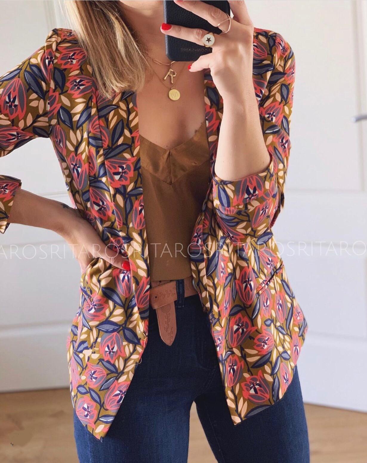 Blazer con cuello y solapa con un estampado precioso. El tejido y acabado de esta prenda es una maravilla.