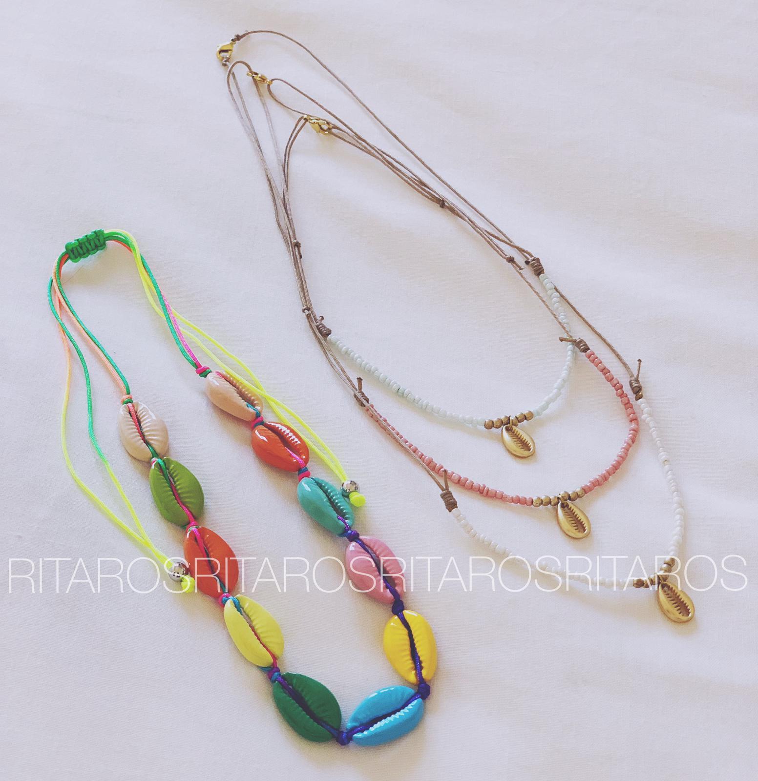Collar corto regulable cubierto de conchas metalizadas tintadas multicolor. Un accesorio que realzará tus looks.