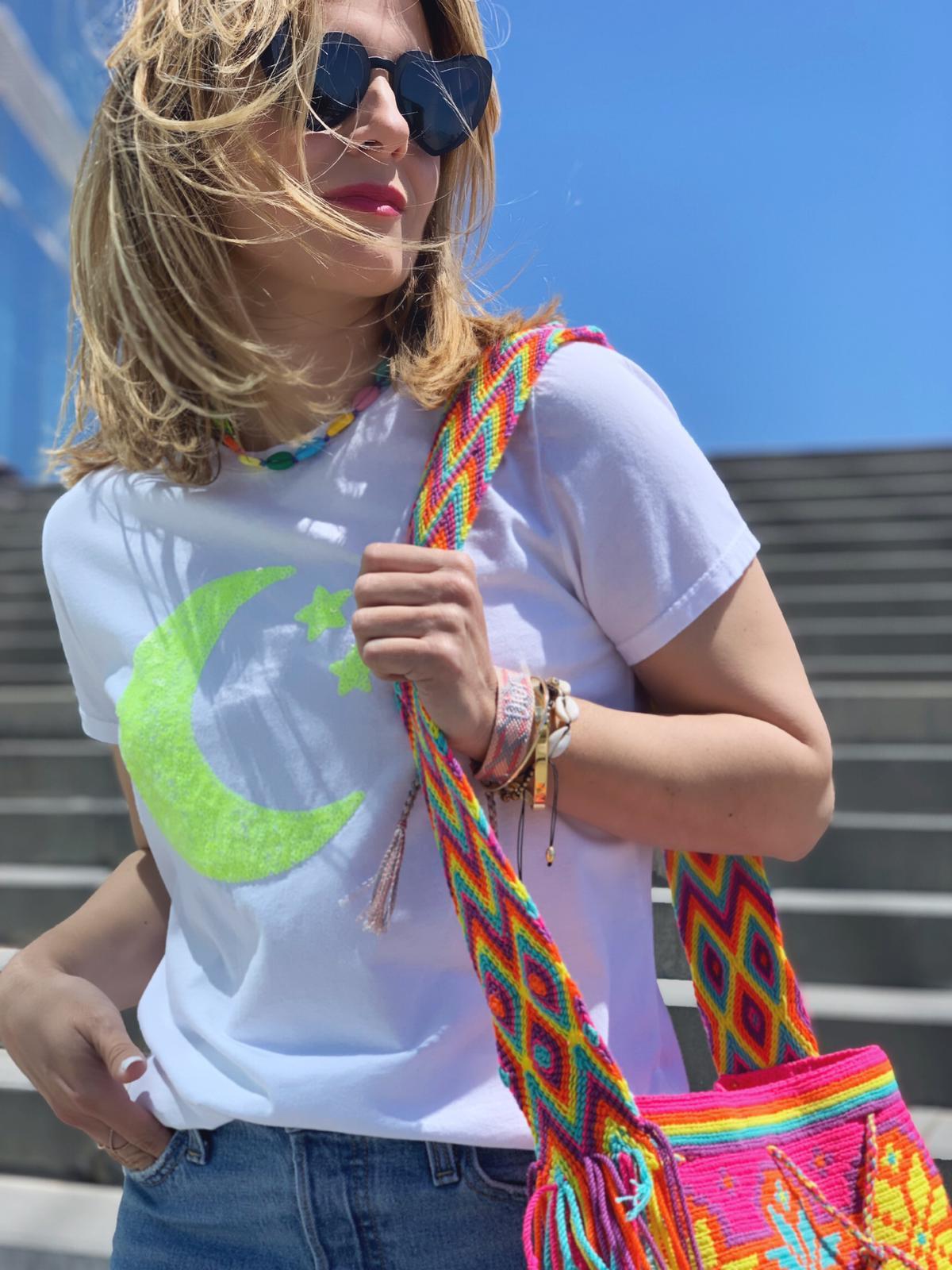 Bolso bandolera hecho a mano con colores flúor. Un accesorio único que realzará tus looks.