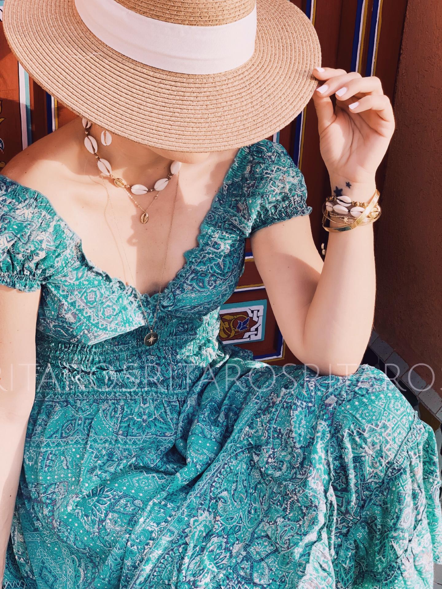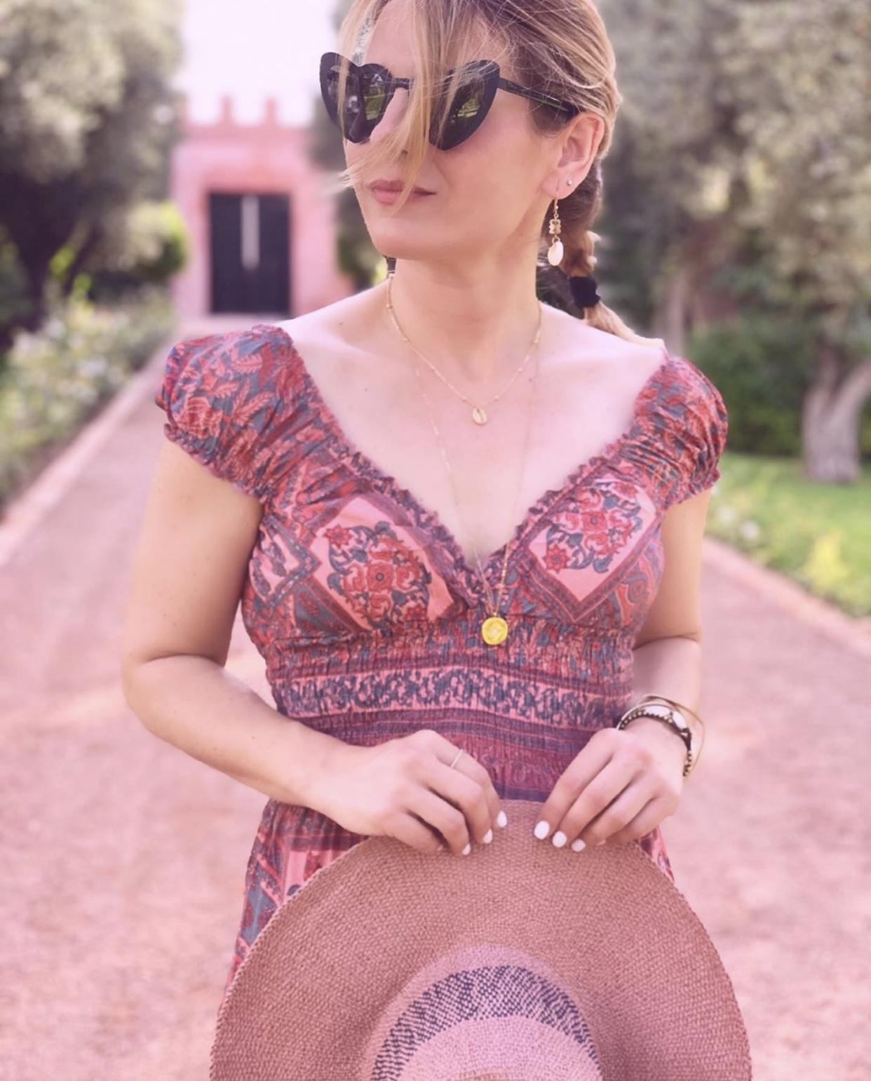 Precioso vestido largo estampado, manga corta, escote en pico y cintura ancha fruncida. Una maravilla de vestido que estiliza muchísimo por el corte y tejido.