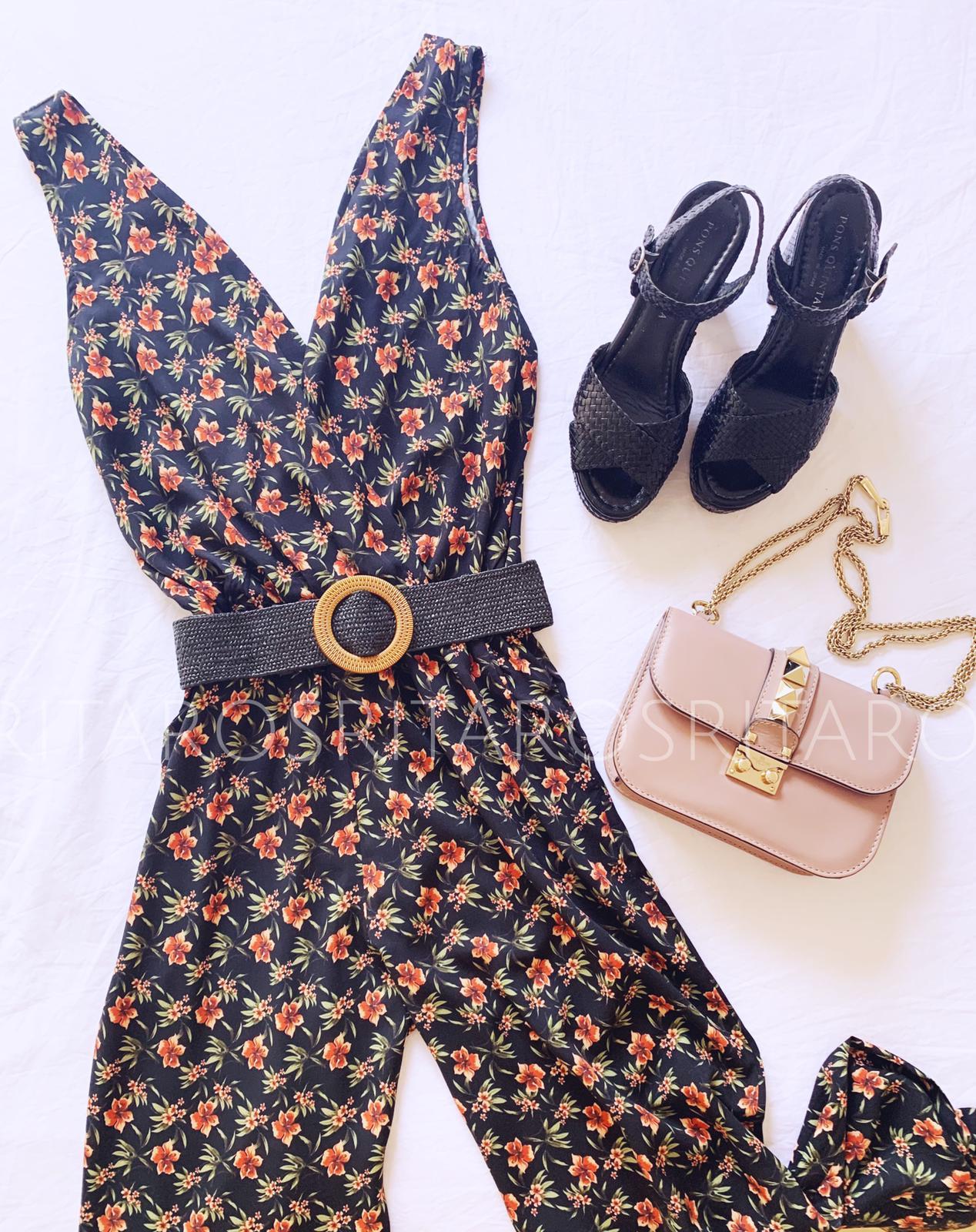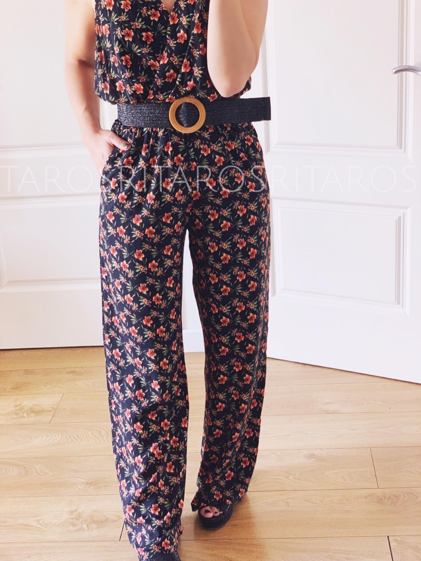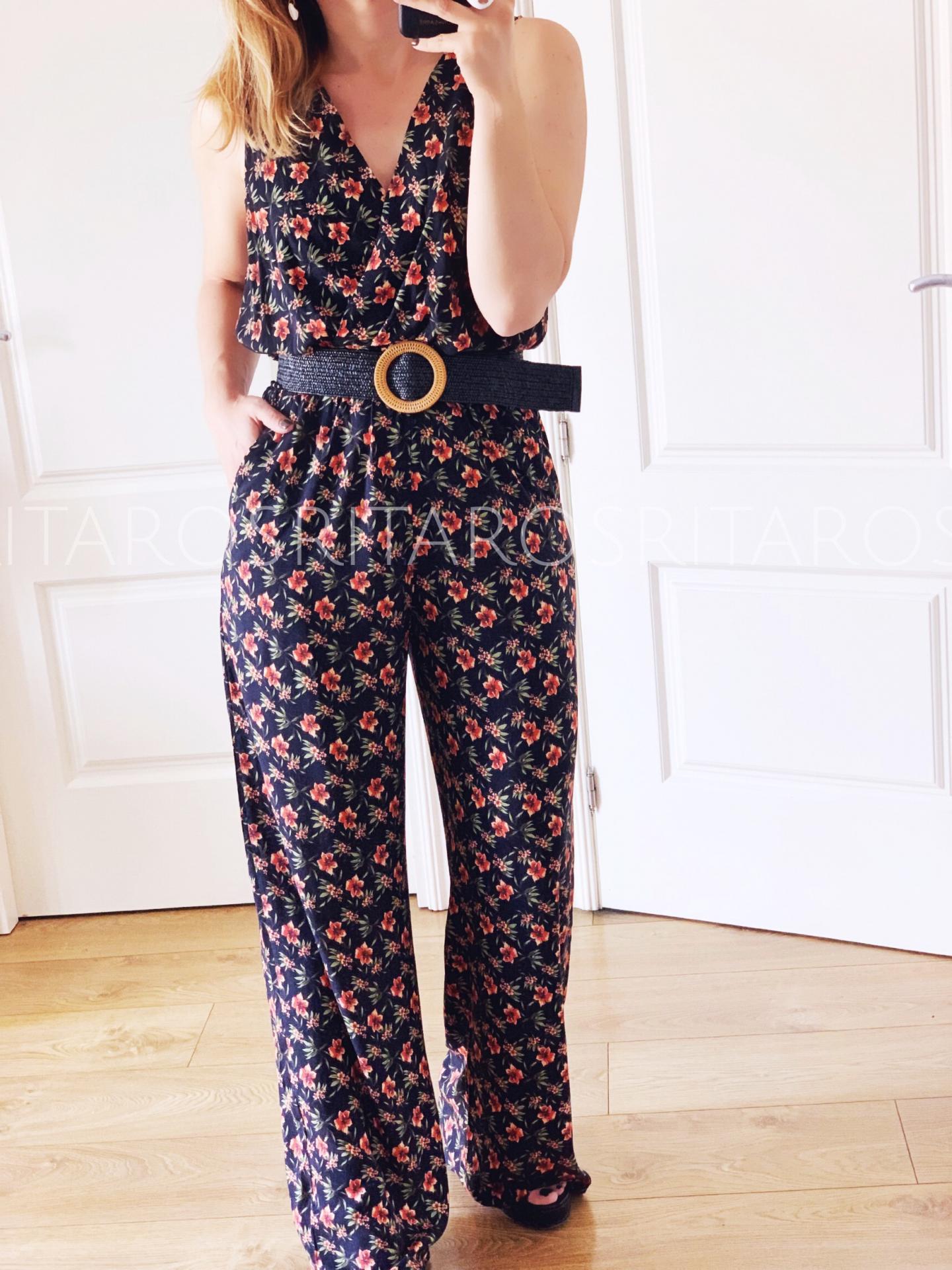 Mono largo largo de tirantes estampado, escote cruzado y cintura fruncida.