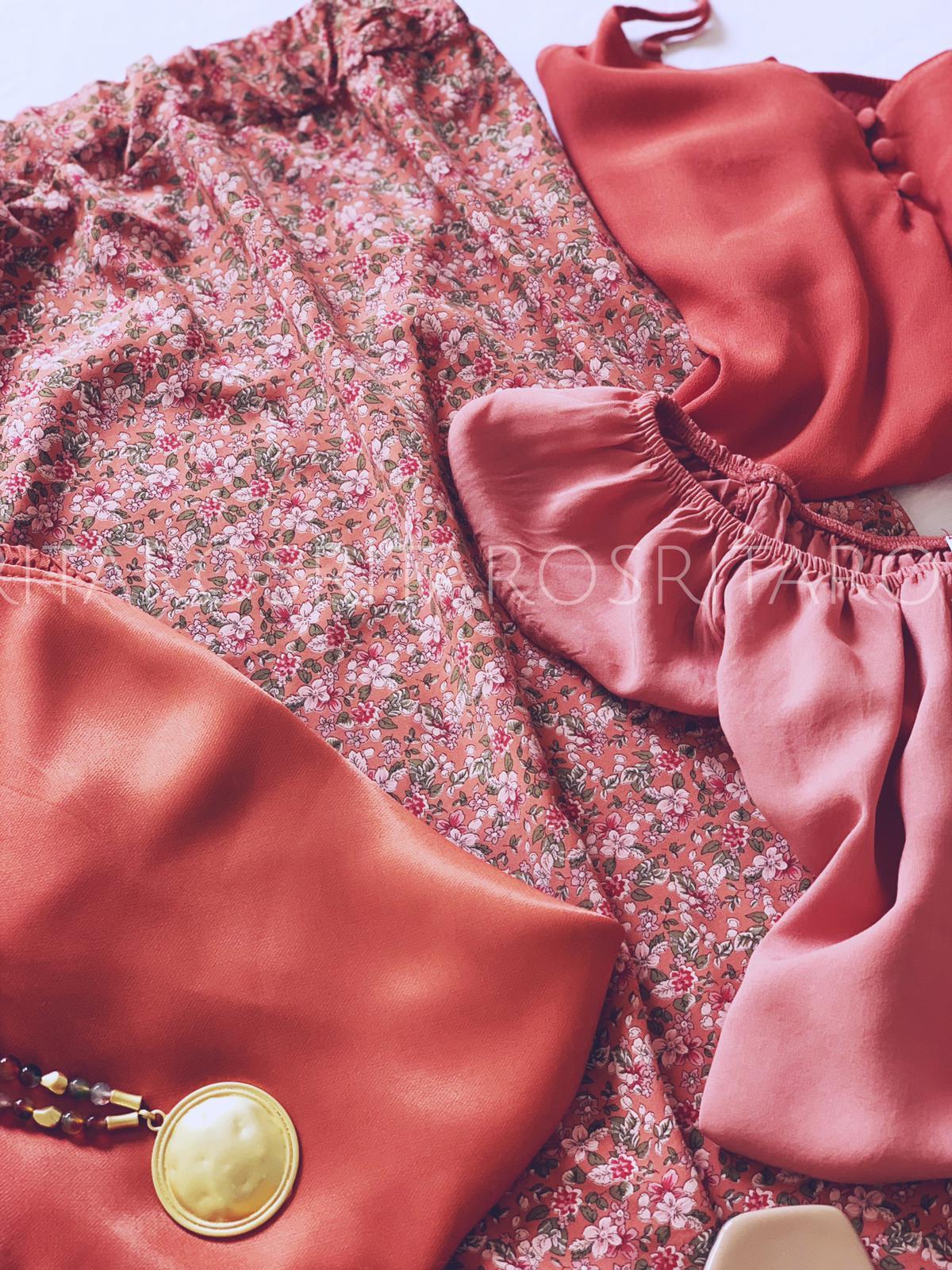 Falda larga de vuelo estampada con cintura con goma elástica y detalle volante en el bajo. Combínala con nuestros tops en color teja y te encantará el resultado.