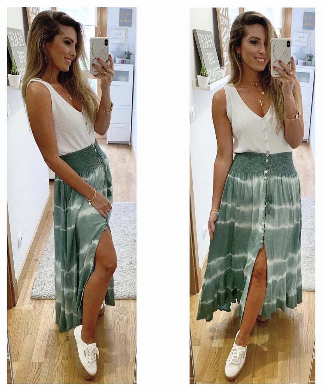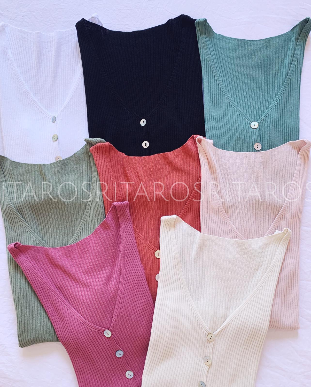 Top de canalé de tirantes, escote de pico y detalle botones.