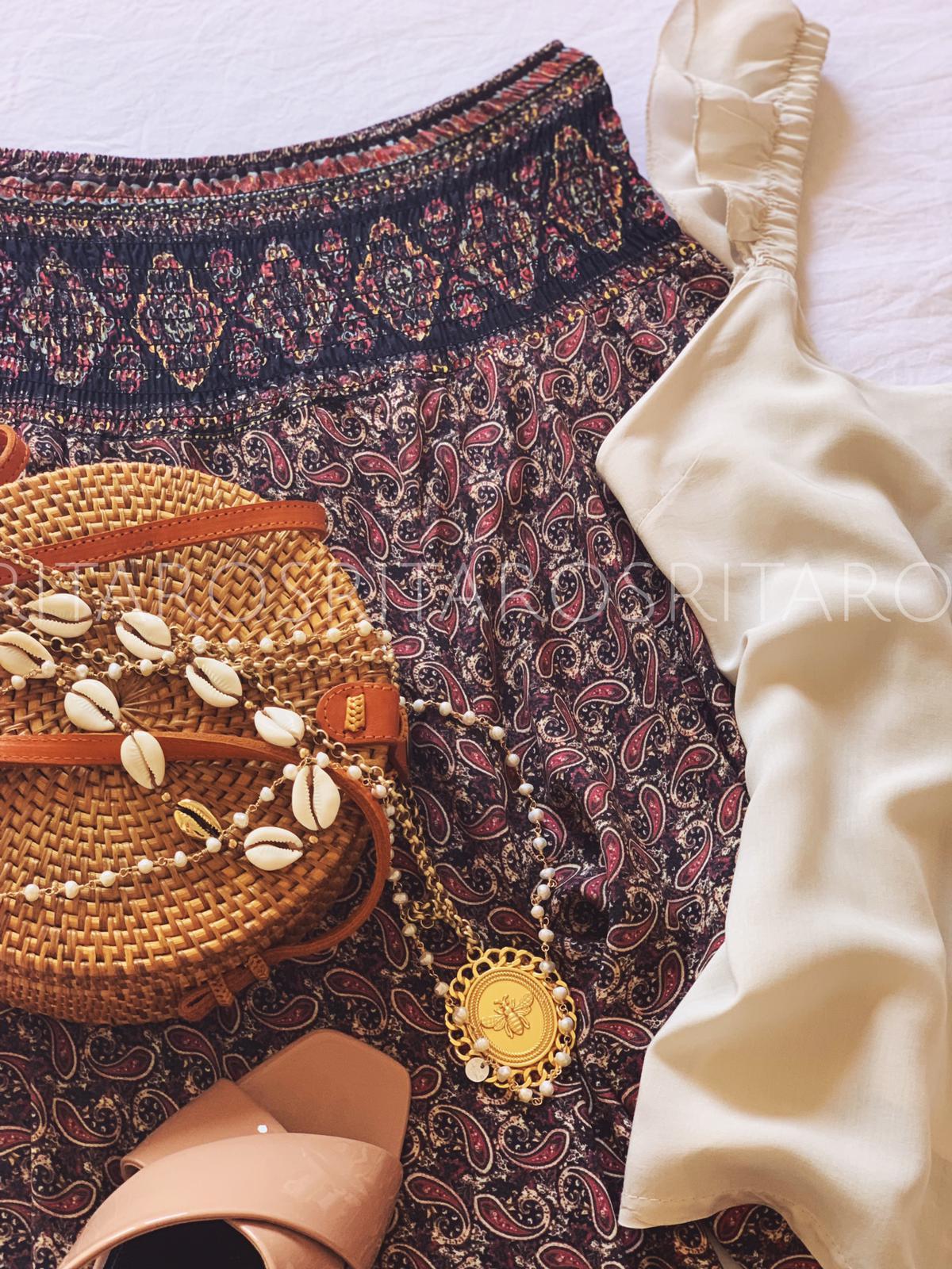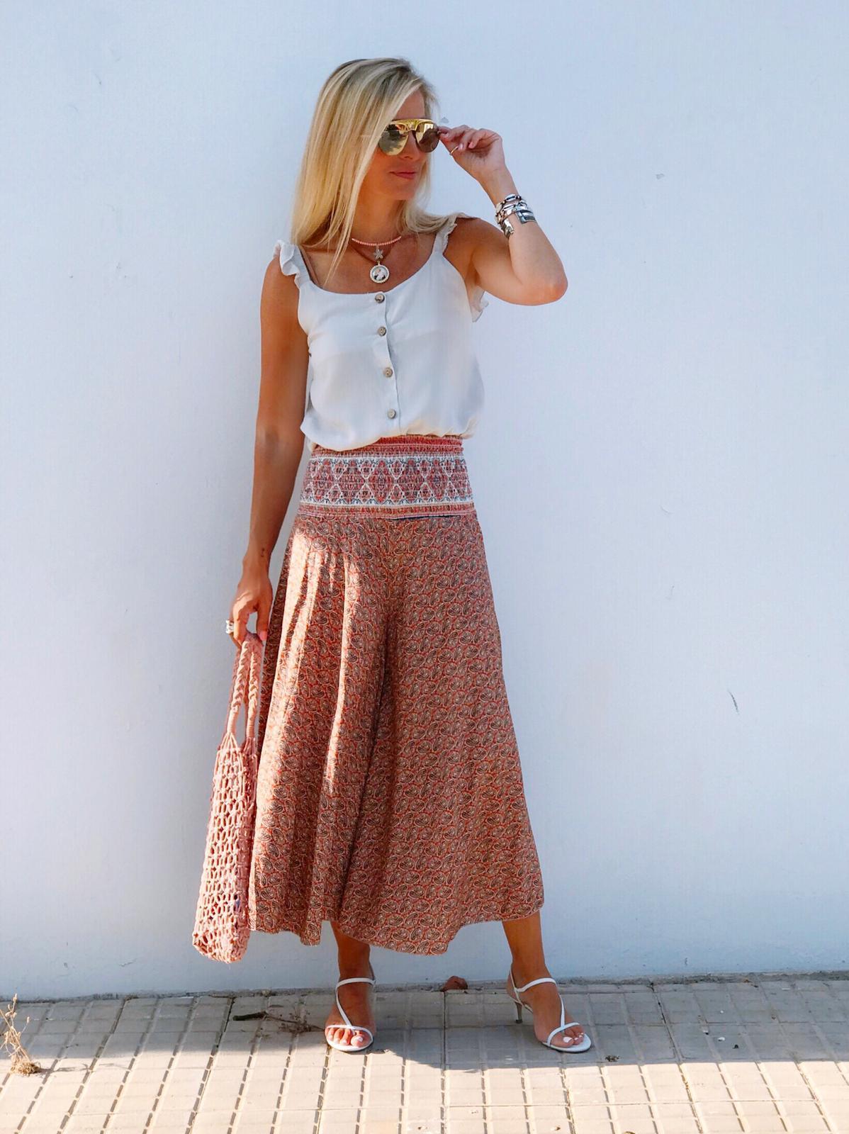 Falda/pantalón estampada de flores con cintura ancha elástica. Combínalo con nuestro top Jana y te encantará el look.