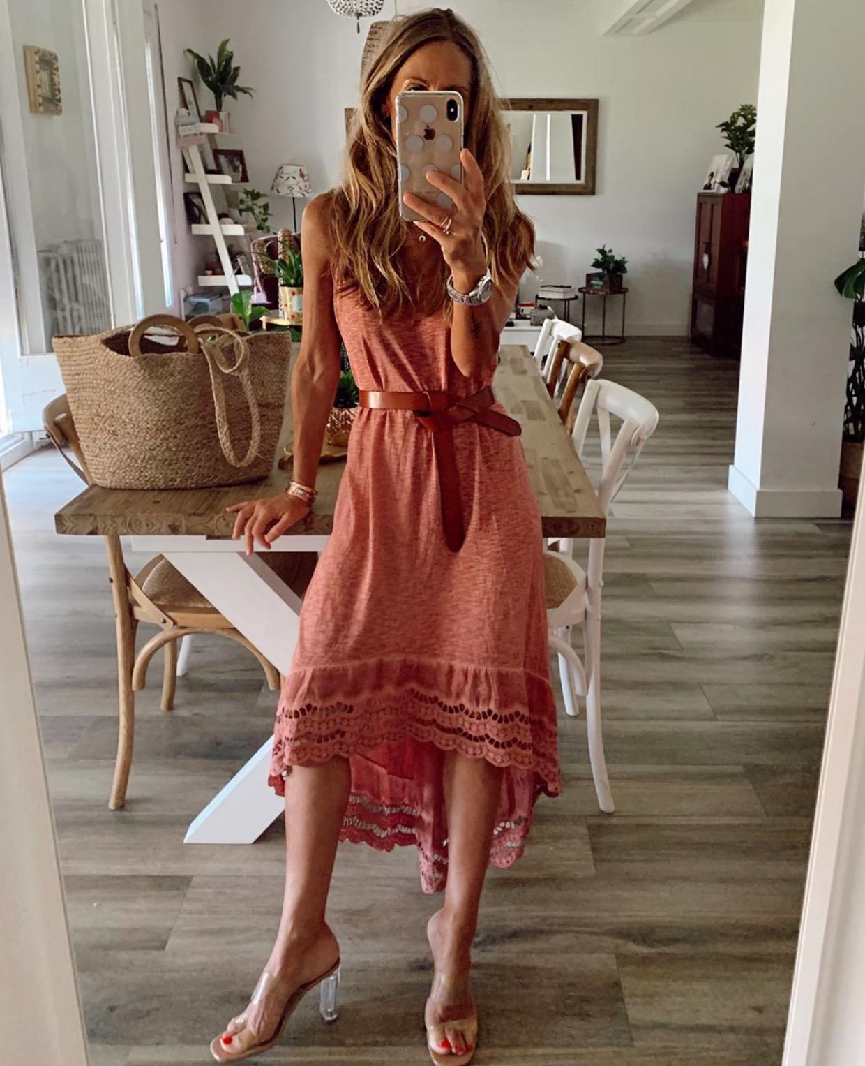 Nuevo vestido de algodón 100% de tirantes con bajo de blonda y corte desigual.