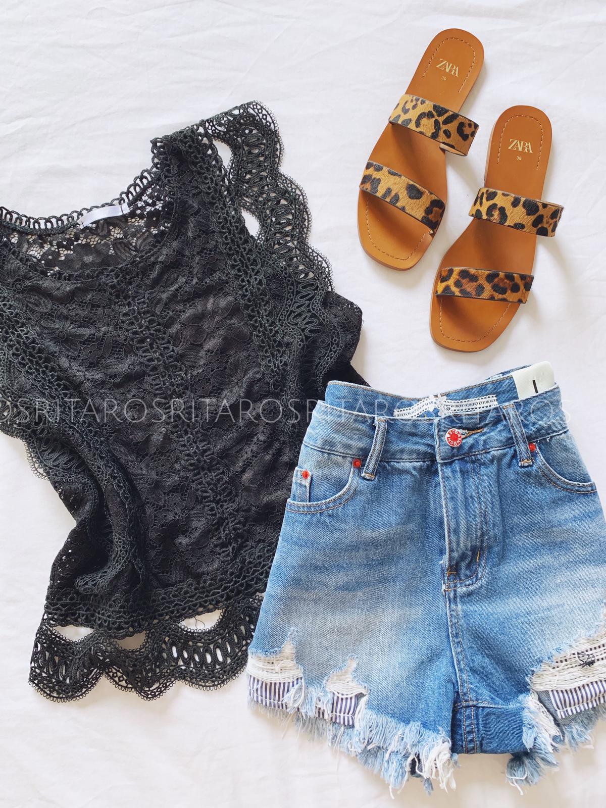Blusa toda de encaje que hemos combinado con nuestro short Denim. Una prenda súper bonita con la estarás siempre perfecta.