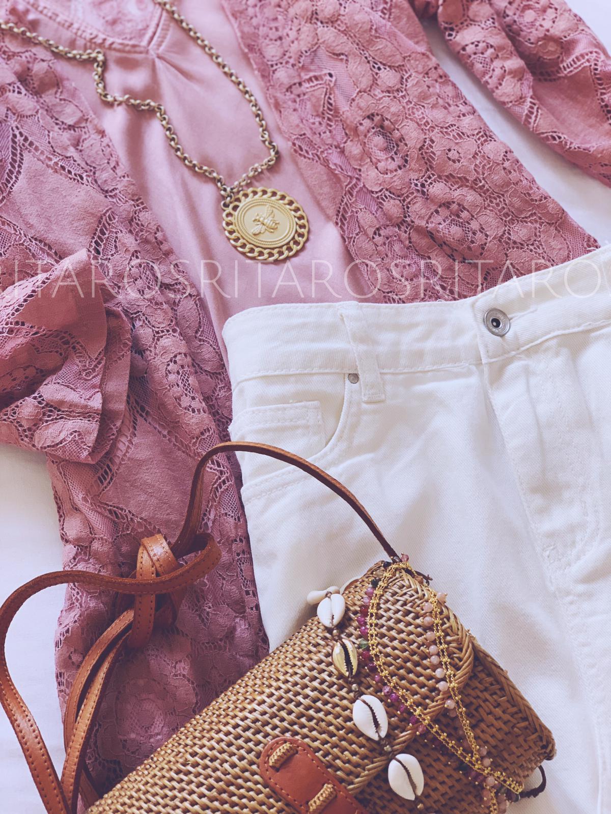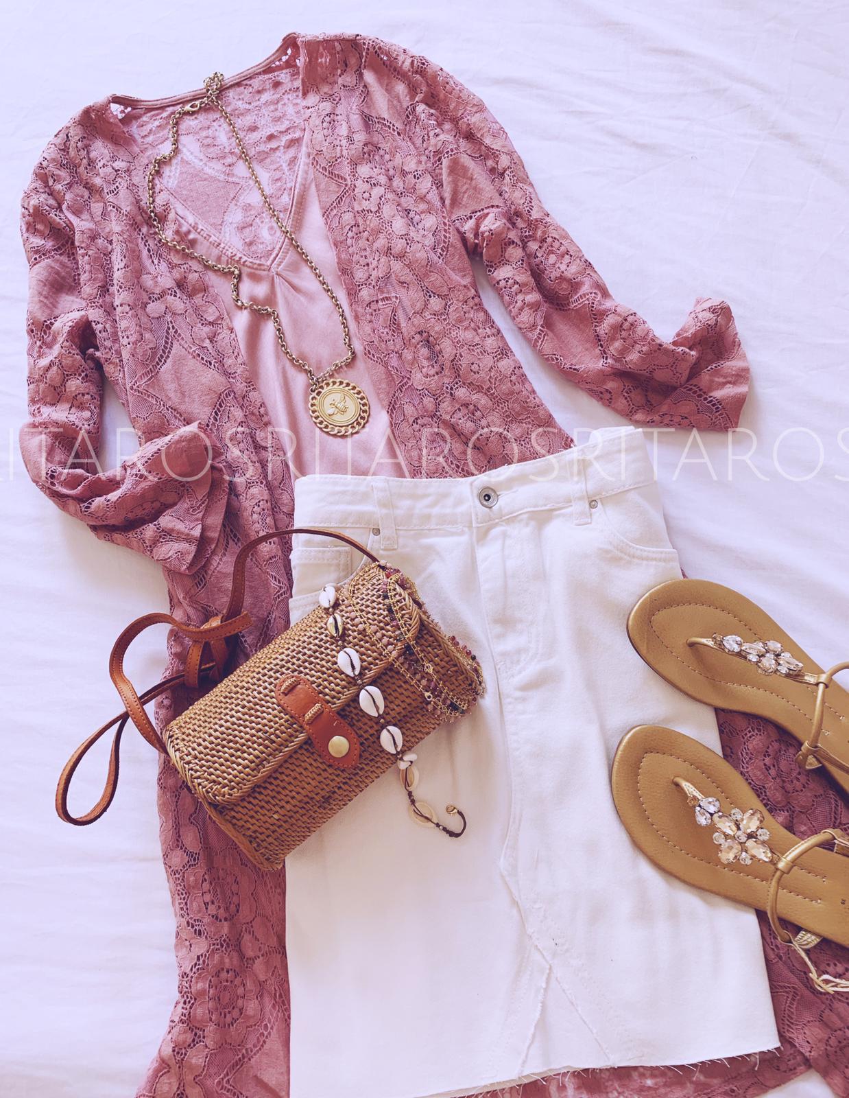 Falda vaquera de 5 bolsillos con bajo desflecado.