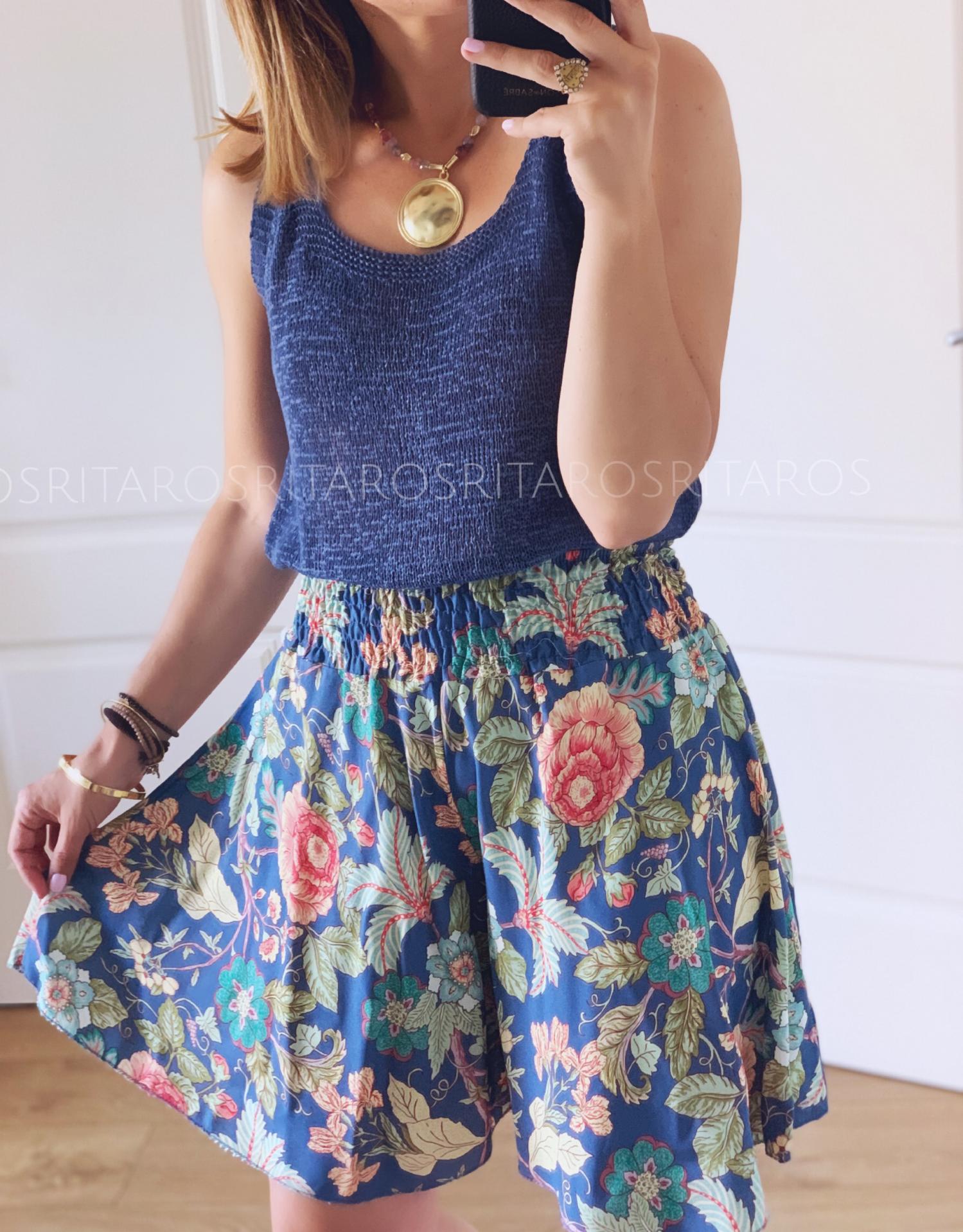 Short fluído con un estampado de flores precioso. Cintura con goma elástica.
