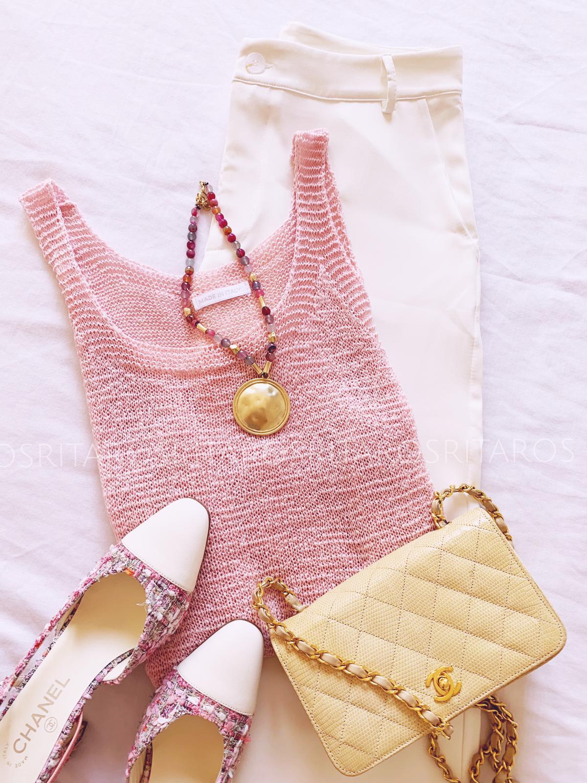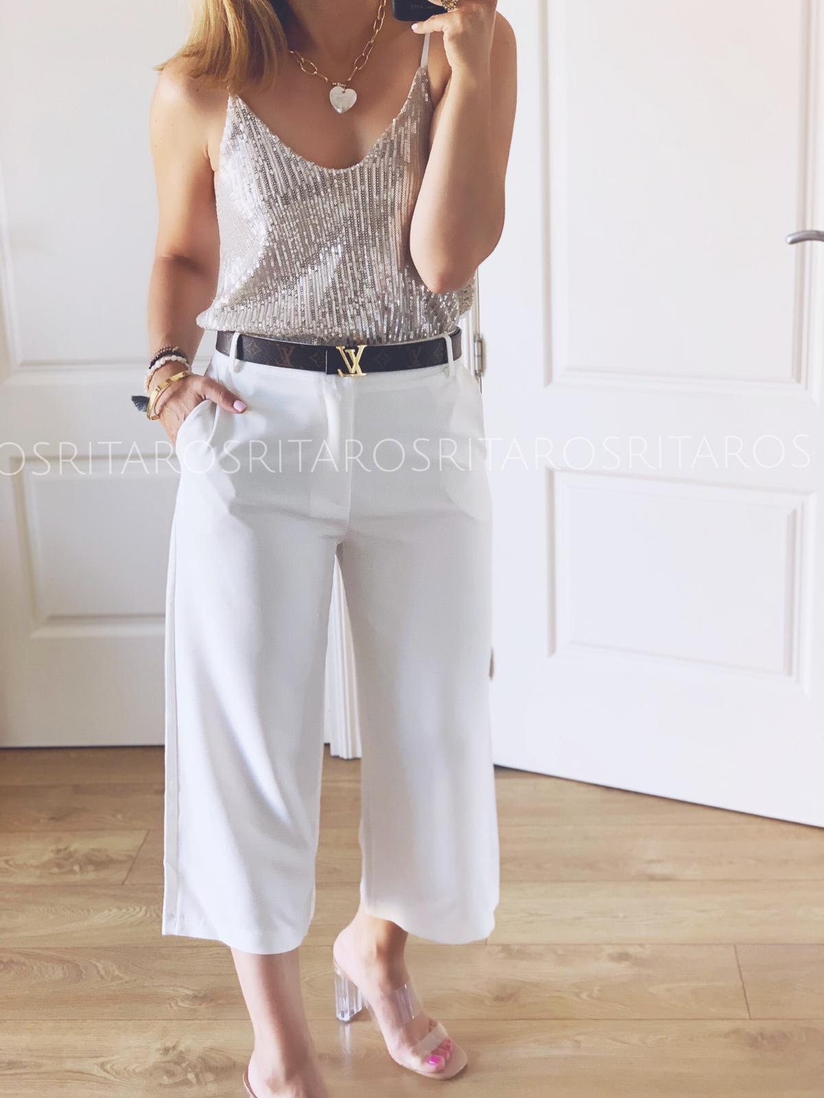 Una monada de pantalón diseño culotte, corte recto y ancho, cerrado con botón y cremallera. Combínalo con nuestro top tricotado en color rosa palo y te encantará el resultado.