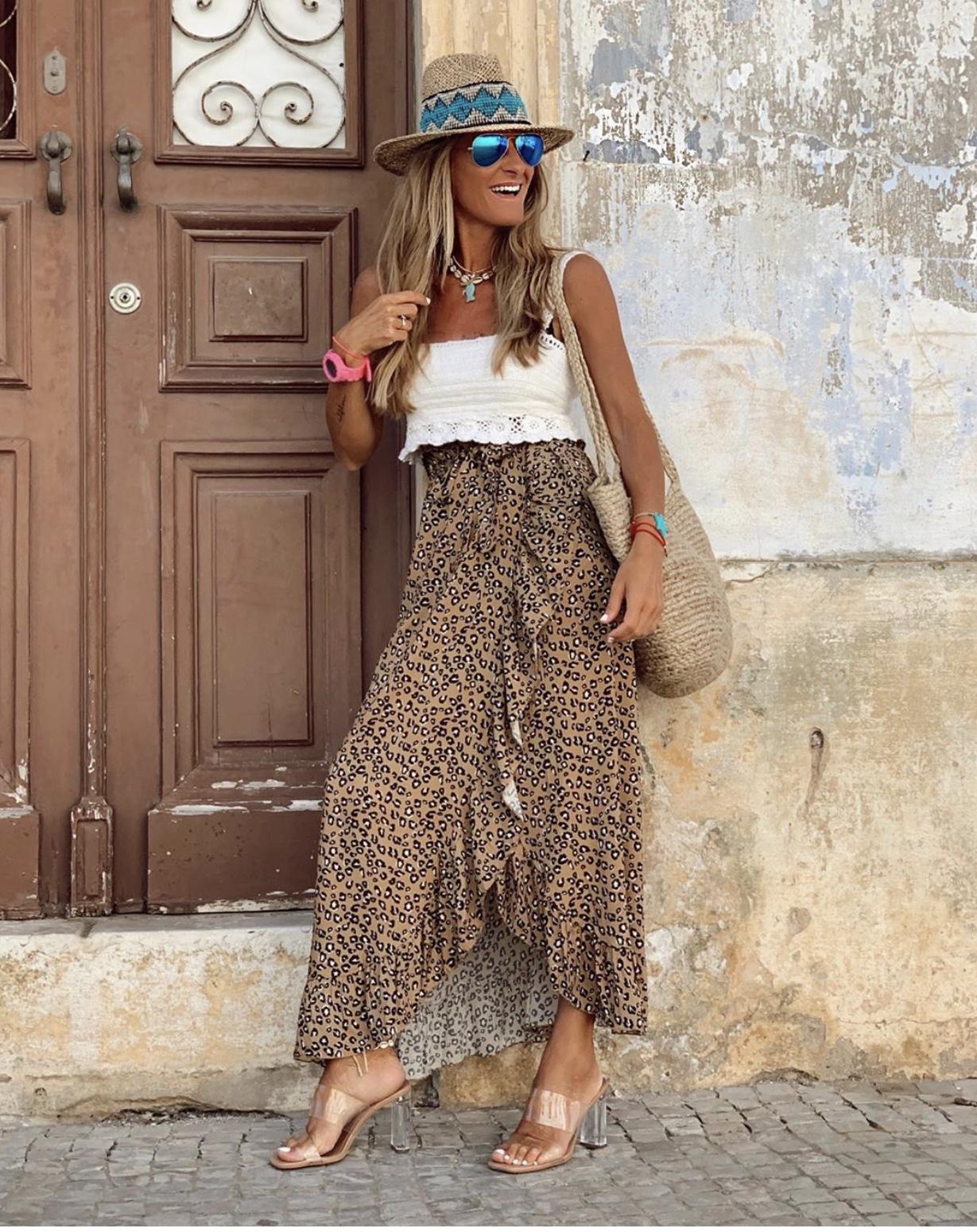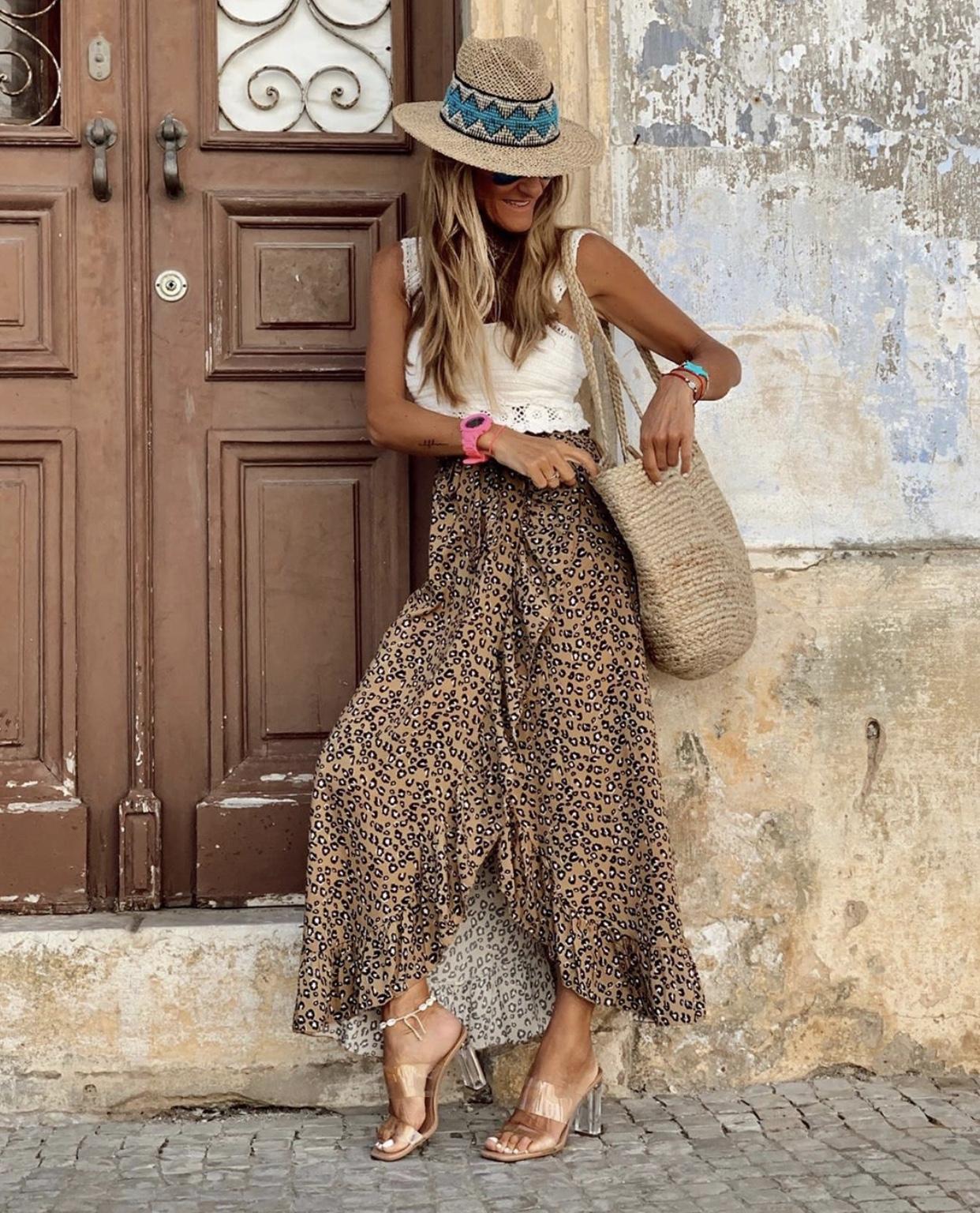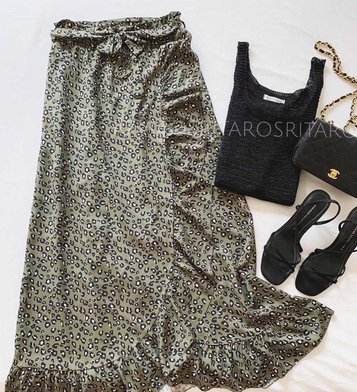 Una monada de falda tipo pareo estampada animal print y cintura con goma elástica.