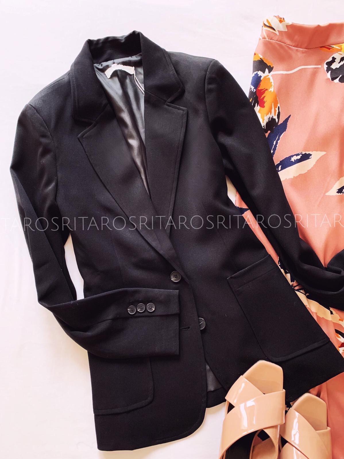 Americana con cuello y solapa de corte ligeramente entallado con bolsillos frontales. Un fondo de armario con un acabado perfecto.