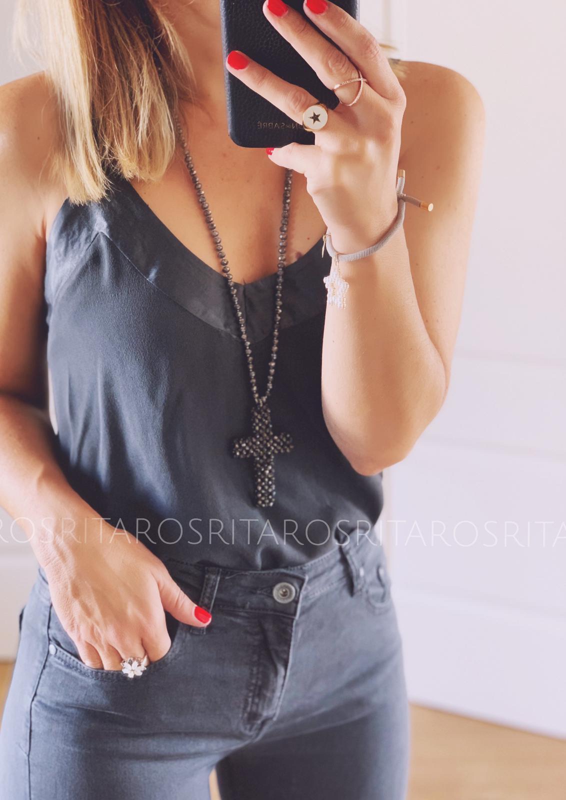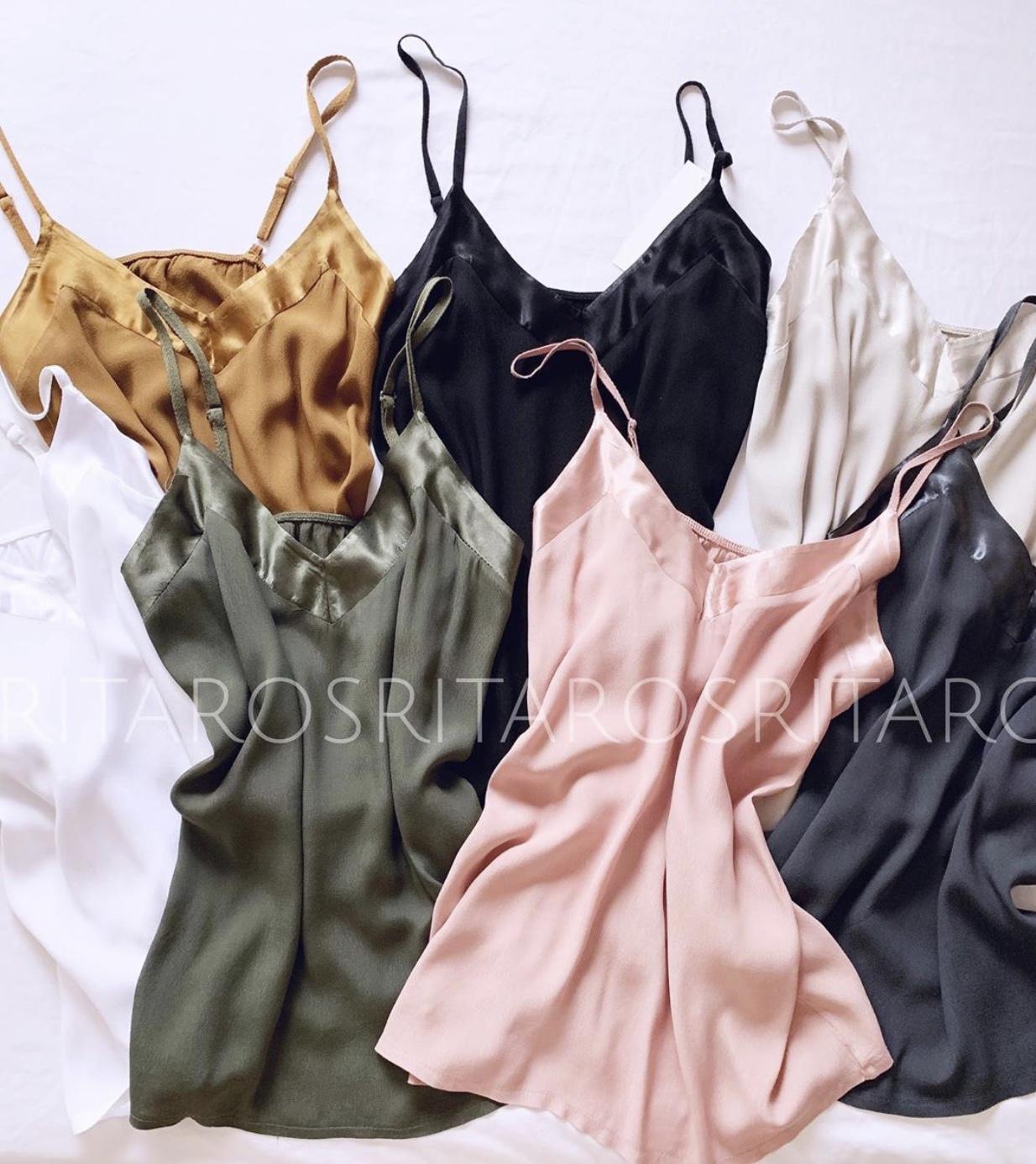 Top lencero de tirantes regulable con escote en raso y goma fruncida en espalda.