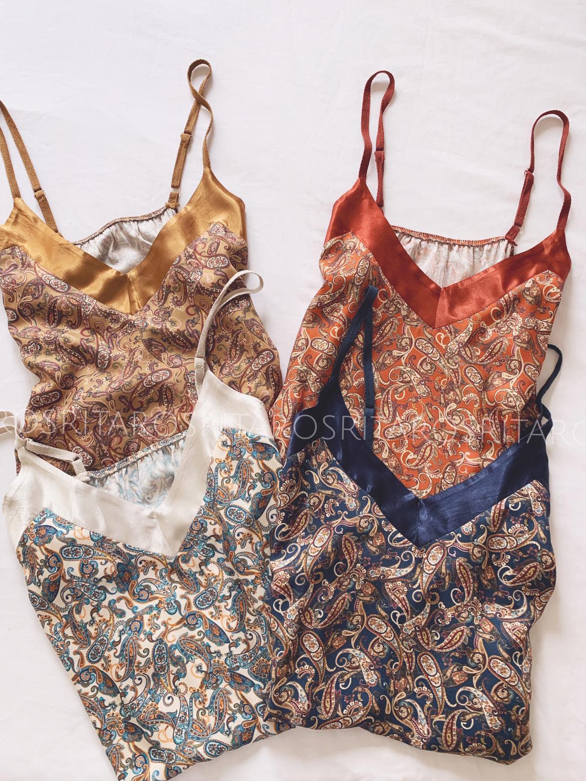 Top estampado de tirantes regulable con escote en raso y goma fruncida en espalda.