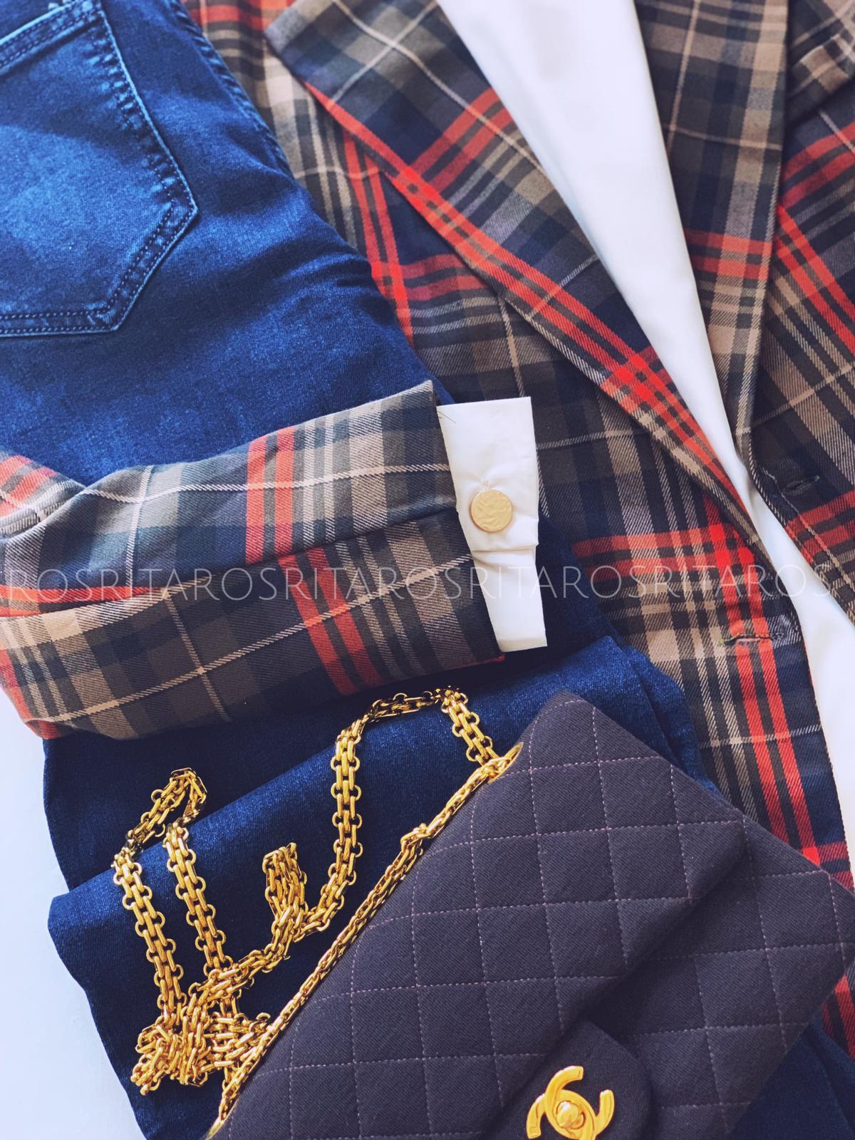 Americana de cuadros de corte cruzado ligeramente entallada.