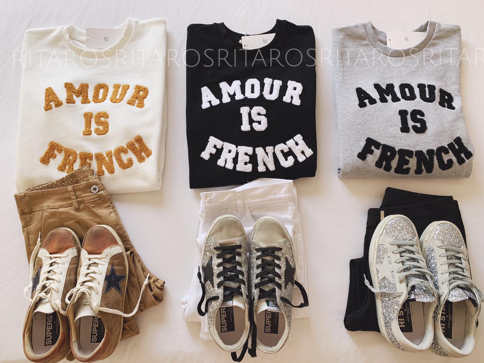 Jersey/sudadera de manga larga y cuello redondo con detalle letras "AMOUR IS FRENCH". Dale un toque informal con mucho encanto a tus looks.