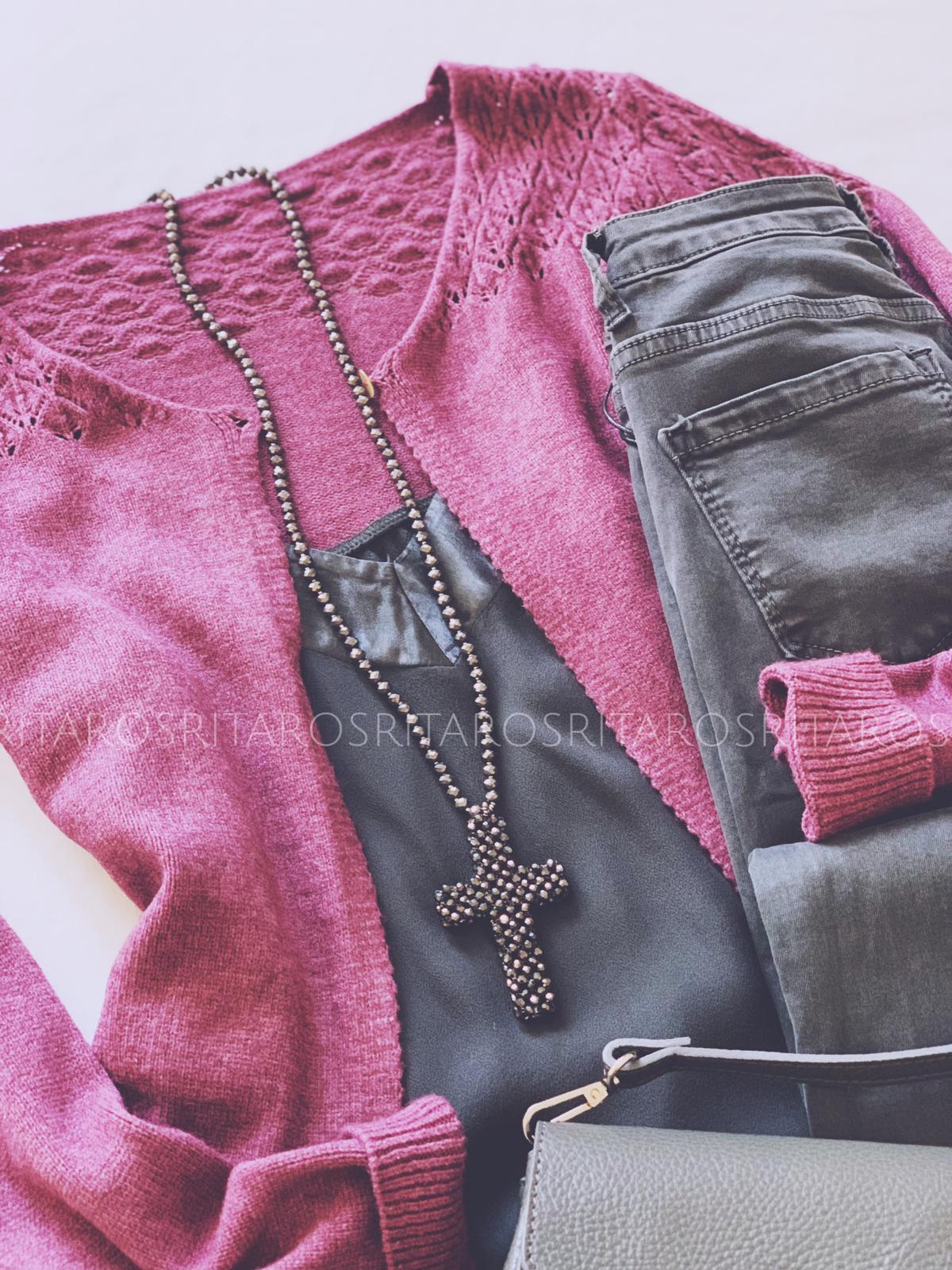Precioso collar todo de pedrería con cruz. Un complemento ideal para realzar tus looks.