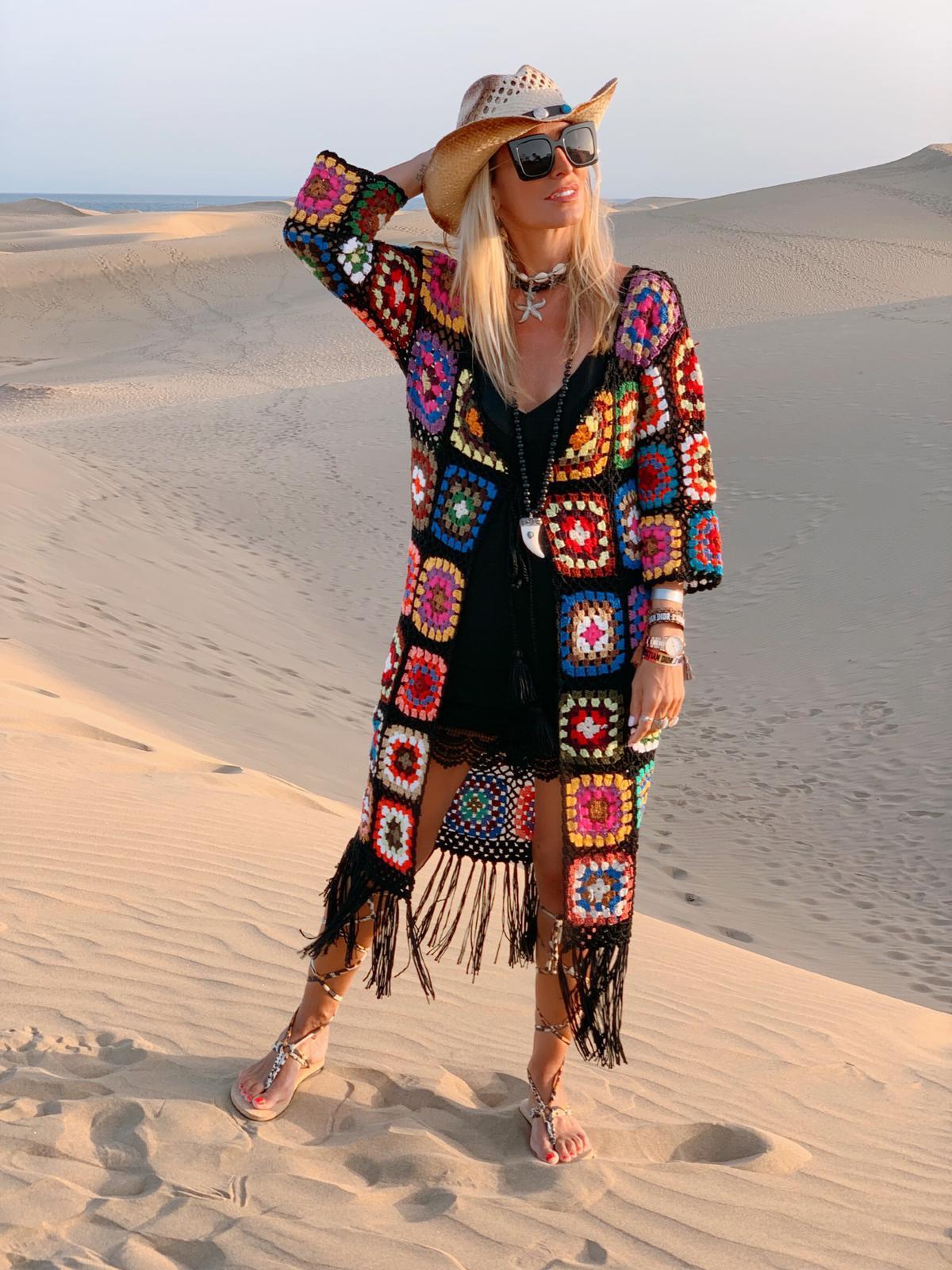 Precioso Kimono de crochet hecho a mano, manga por debajo del codo y bajo acabado con flecos. Piezas únicas que son una maravilla.