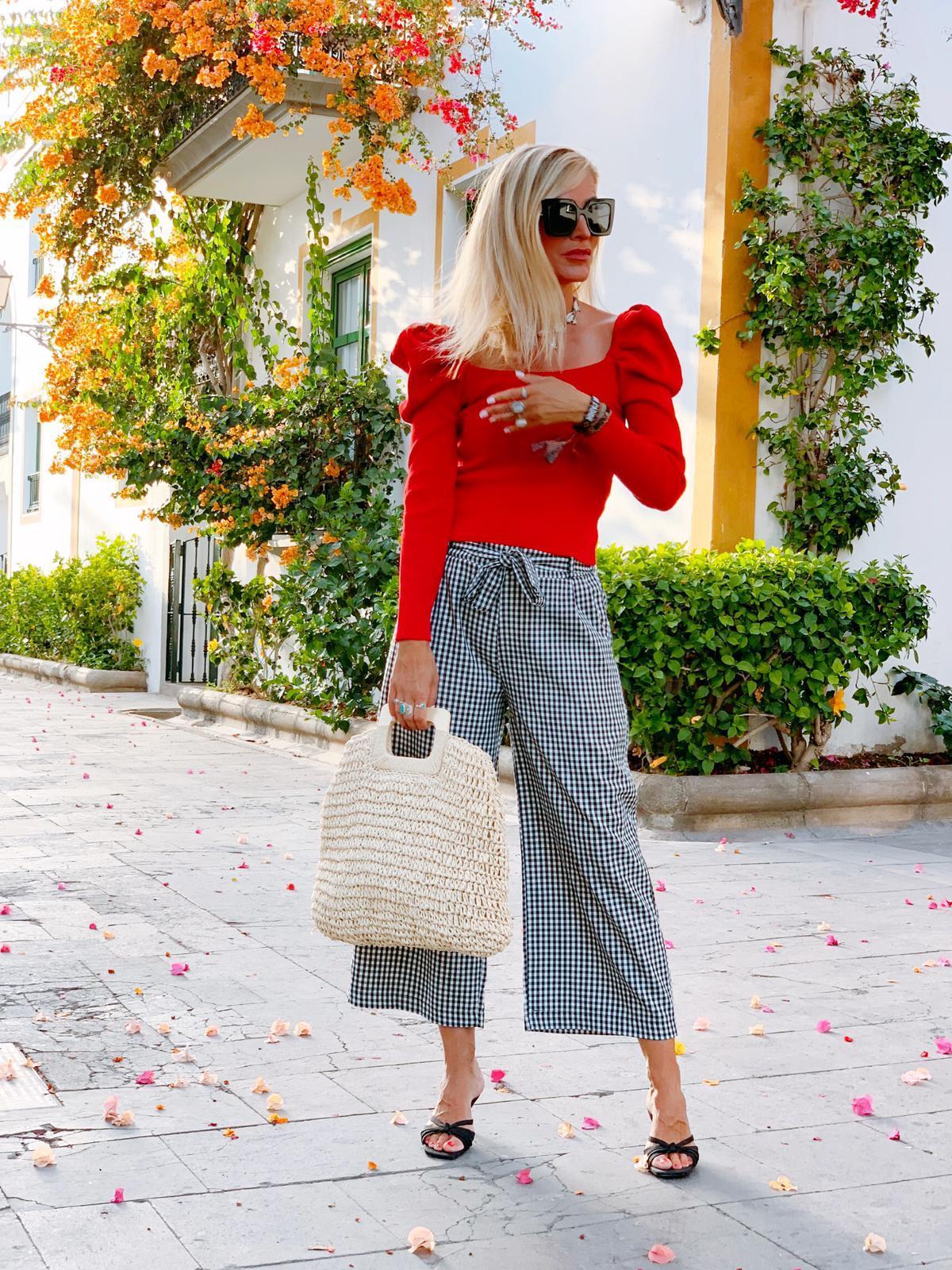 Pantalón palazzo estampado vichy con goma por detrás de la cintura y lazo del mismo tejido para anudar. Bolsillos laterales. Combínalo con nuestro jersey de mangas abullonadas en color rojo, te encantará el resultado.
