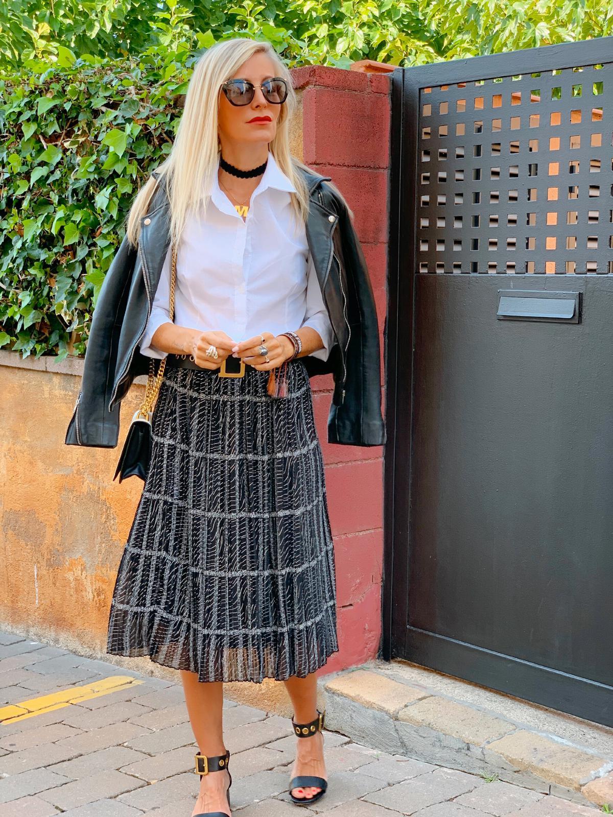 Falda de gasa estampada de corte midi, plisada con cintura con goma elástica.