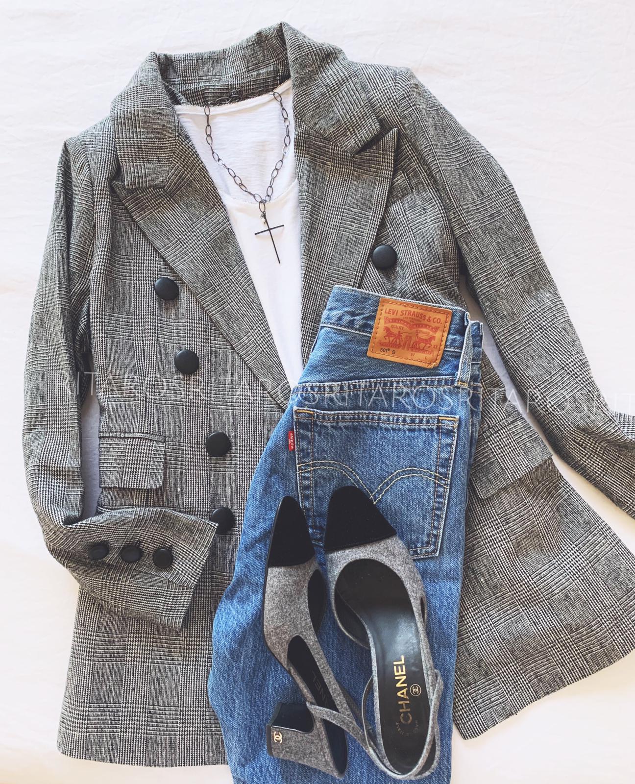 Americana de corte entallado con cuello y solapa estampada estilo gales.